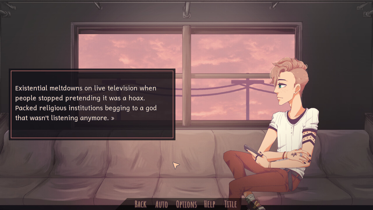 Yesterday, the world ended, but Luke somehow finds himself the only one alive on a train heading who knows where. At least, he believes he's the only one alive still. Itch.io]