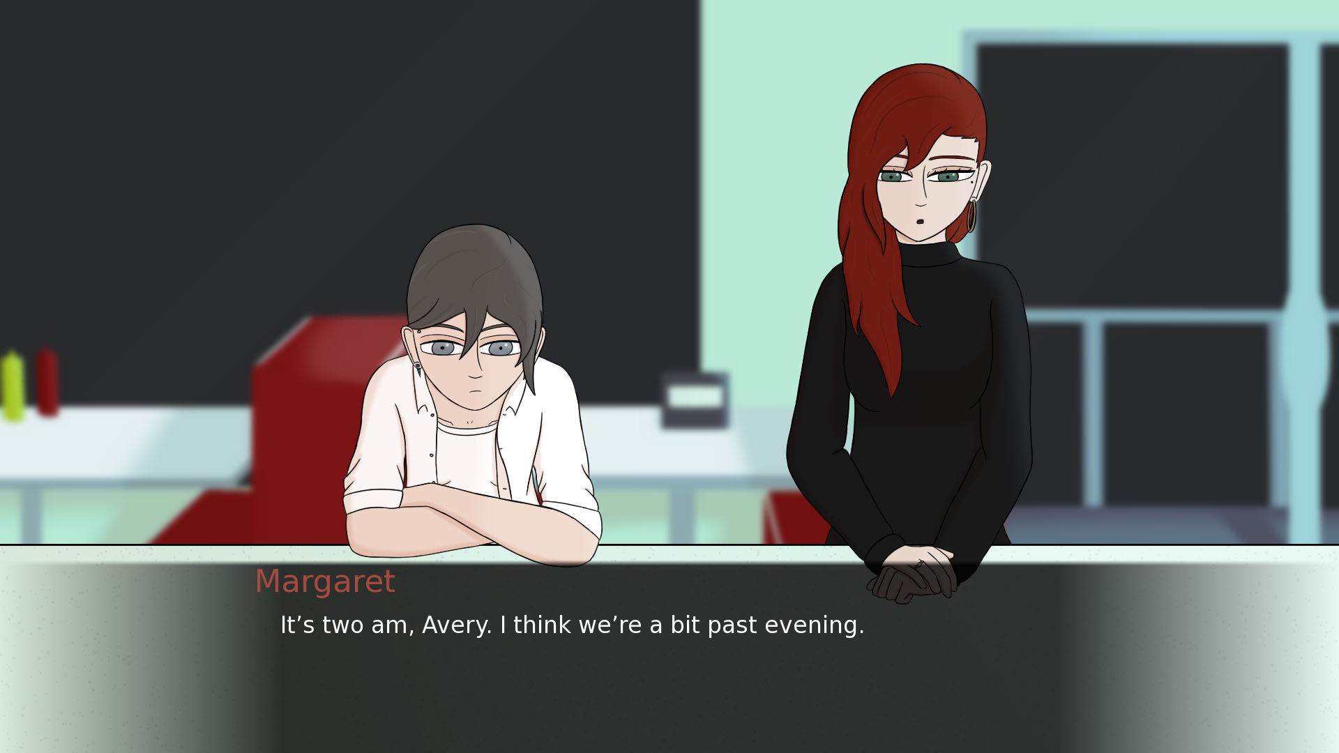 A short visual novel about two strangers having a late-night conversation in a roadside diner.