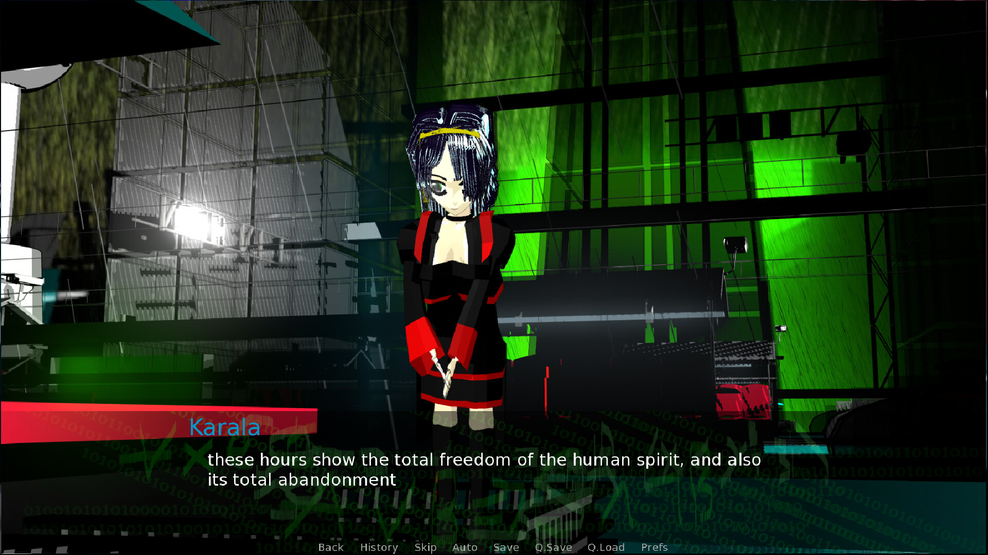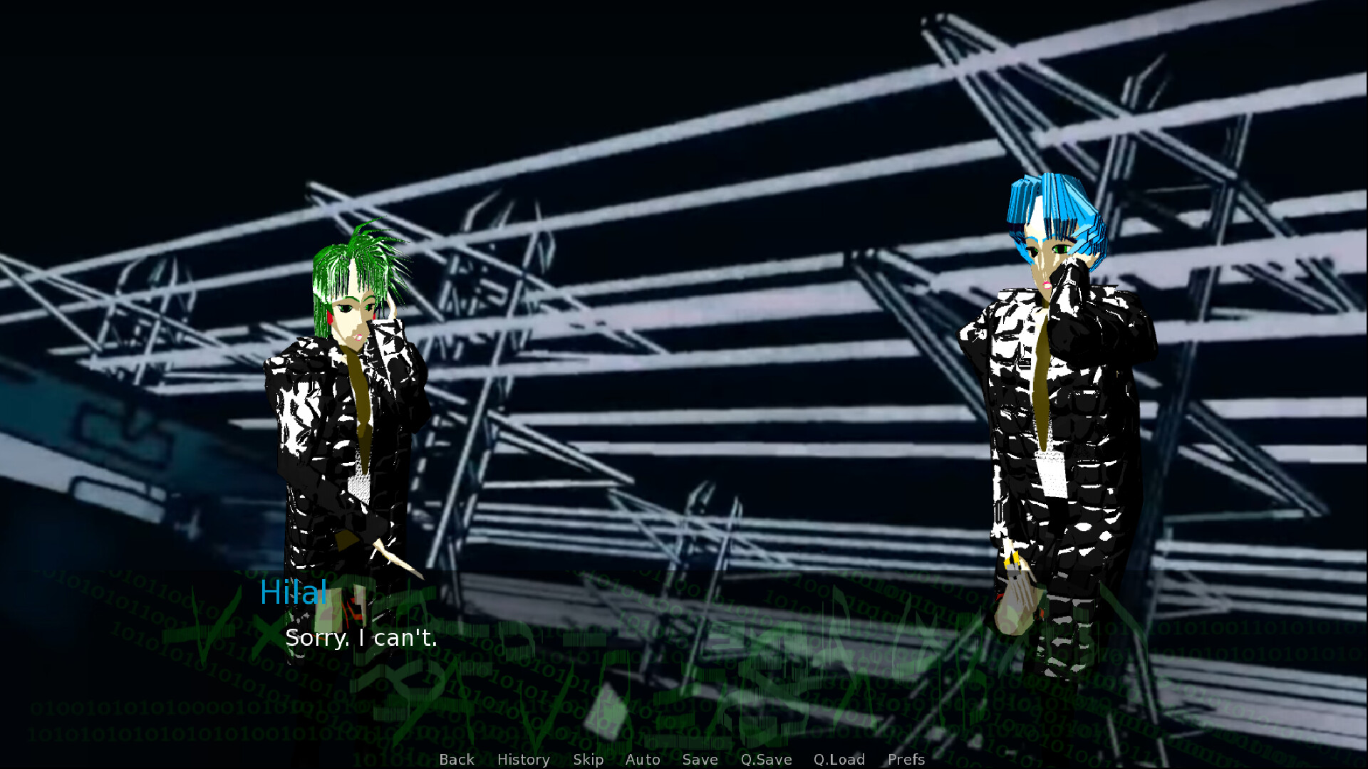 Future humanity is in conflict with a mysterious, incomprehensible alien species which is defined as terrorists by the government. A group of mathematicians developed an algorithm which can predict the behavior of the attackers. A young lonely girl should become a new member of the institute but when she arrives at Kyoto Novalis, the aliens attack and she gets lost in the city. Hilal, her new guardian, a female cyborg, searches her in the city, but they don't have much time, because the government ordered a nuclear attack on the city if the aliens can't be stopped in time. (Source: Itch.IO page and https://cyberpunkdatabase.net/movies.php)