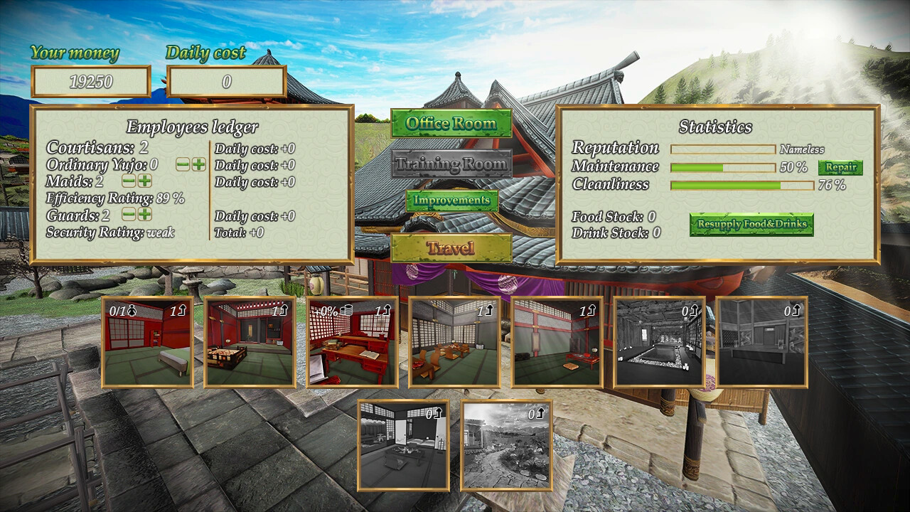 However, you realize that your father's business was struggling and counting its last days before closing the doors, but with the intervention of the local boss-like figure, you're given a second chance to keep the building. With barely enough money to survive the coming months and a few courtesans in training, you've decided to return "The Red Petal" pleasure house to its former glory.