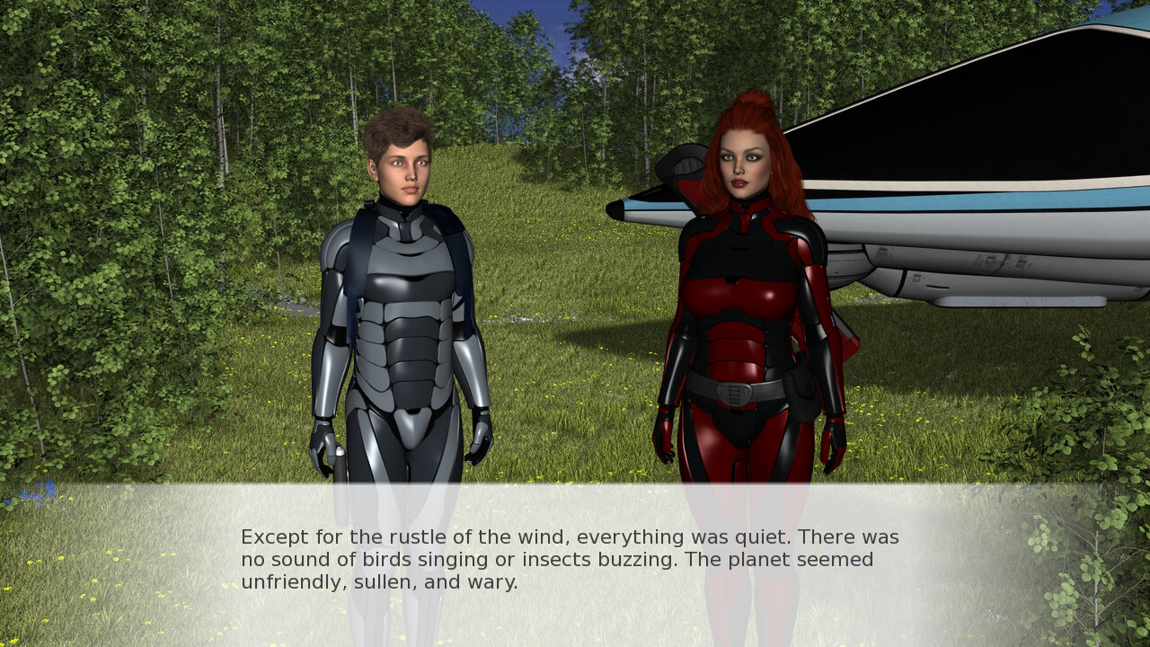 The game takes place in the future, in the 22nd century. In this game, you will control the actions of a young married couple. The husband is a simple guy, a student from Earth, the wife is a cool and sexy ex-adventurer. What challenges await them on a mysterious planet? Itch.io]