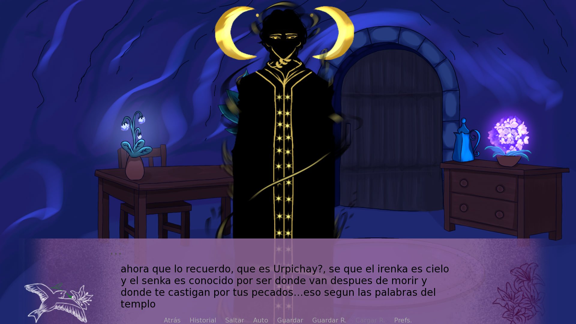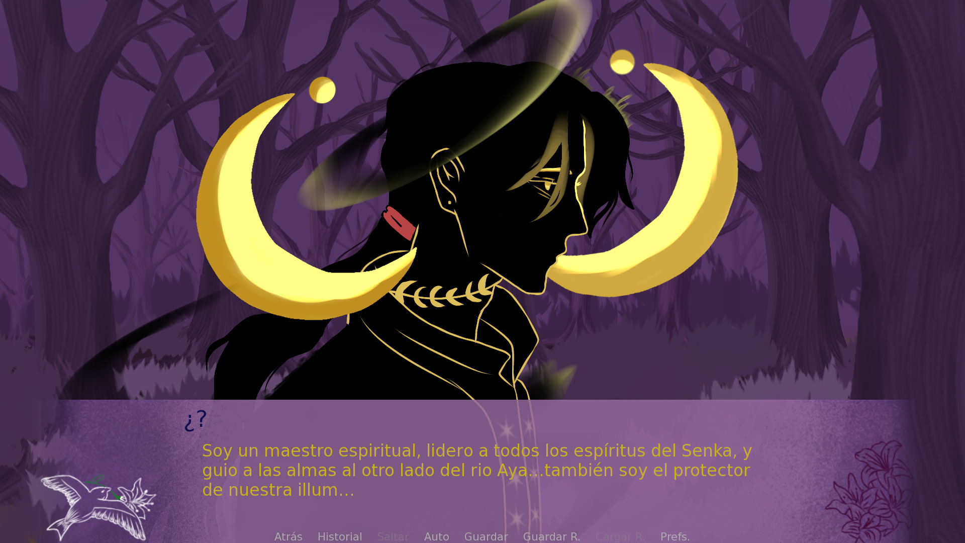 A nameless heroine wakes in a dark forest with no idea who she is. Caos Idílico follows her as she meets odd beings, hears strange languages, and pieces together her past. Itch.io]