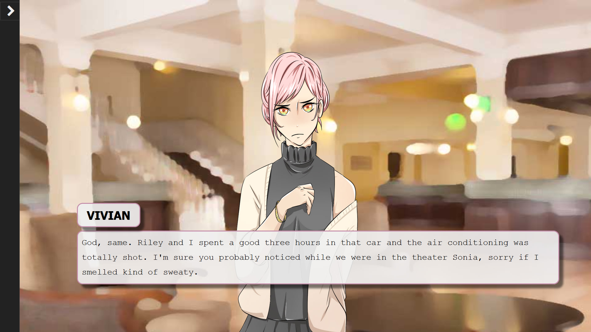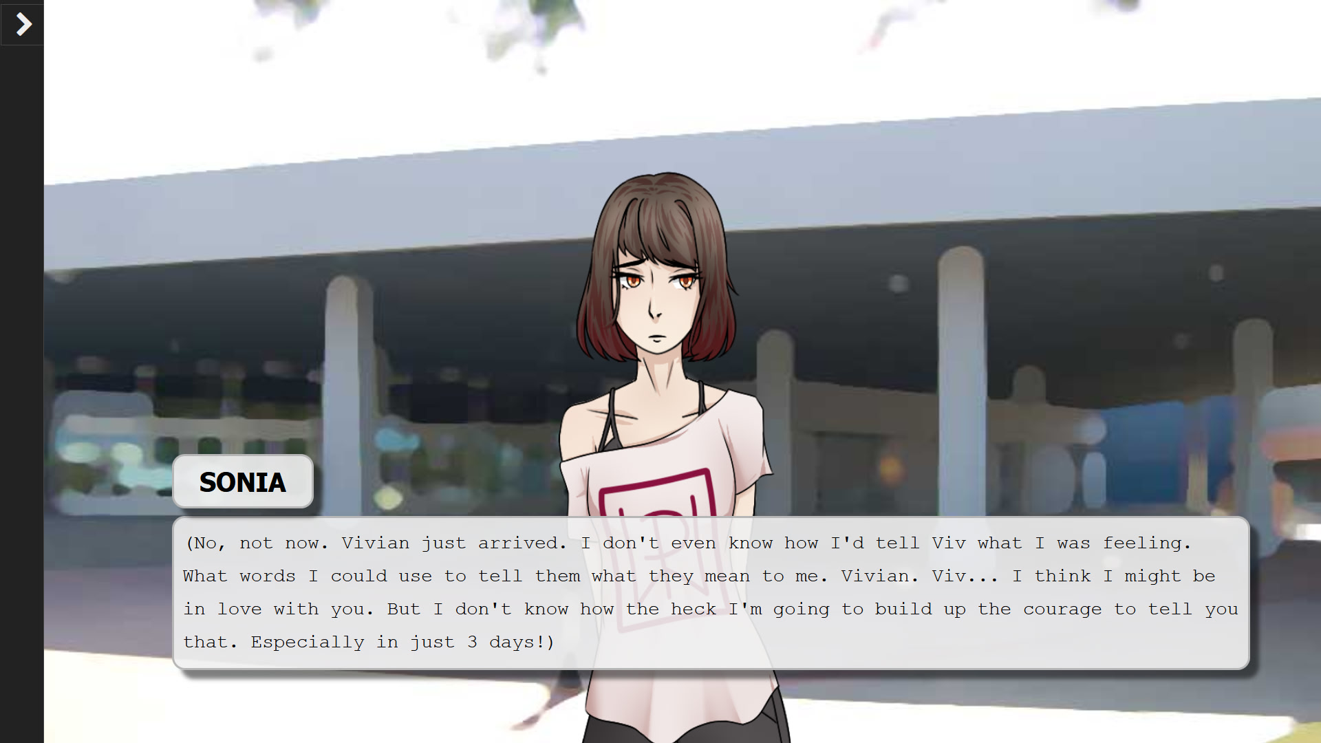 Sonia is a typical, gloomy enby nerd who's fallen in love with their online friend Vivian. She's been able to keep these feelings under wraps, but now that they'll be meeting up at an anime convention, there's no way Sonia can put this off any further! With just 3 days to confess their feelings, Sonia will have to navigate the halls of love as well as artist alleys, free play arcades, and tabletop games to finally confess what she's been feeling all this time.