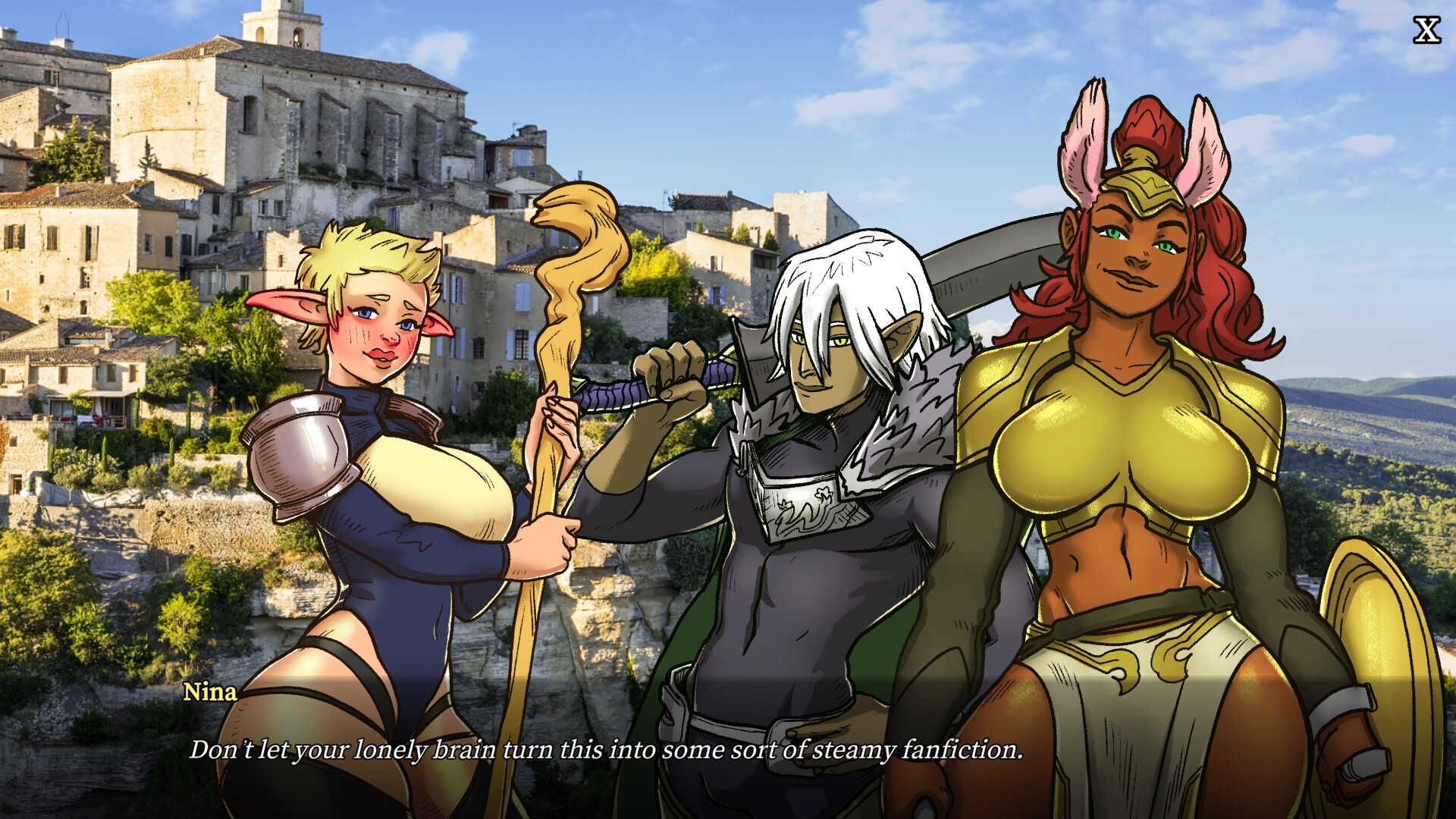 Play as Nina, an introverted gamer waiting for her breakout moment in college. At the start of Holiday Break, You've been invited by classmates to join their team and try a brand-new VR MMORPG: Realms of Legends. There's only one catch: your party is attractive!! Steam]