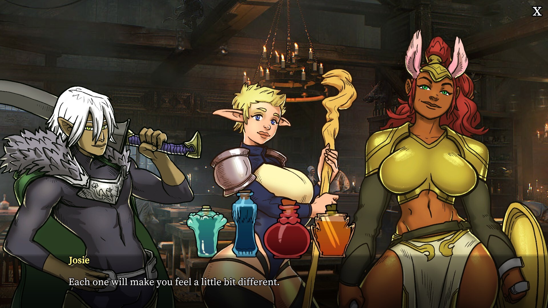 Play as Nina, an introverted gamer waiting for her breakout moment in college. At the start of Holiday Break, You've been invited by classmates to join their team and try a brand-new VR MMORPG: Realms of Legends. There's only one catch: your party is attractive!!