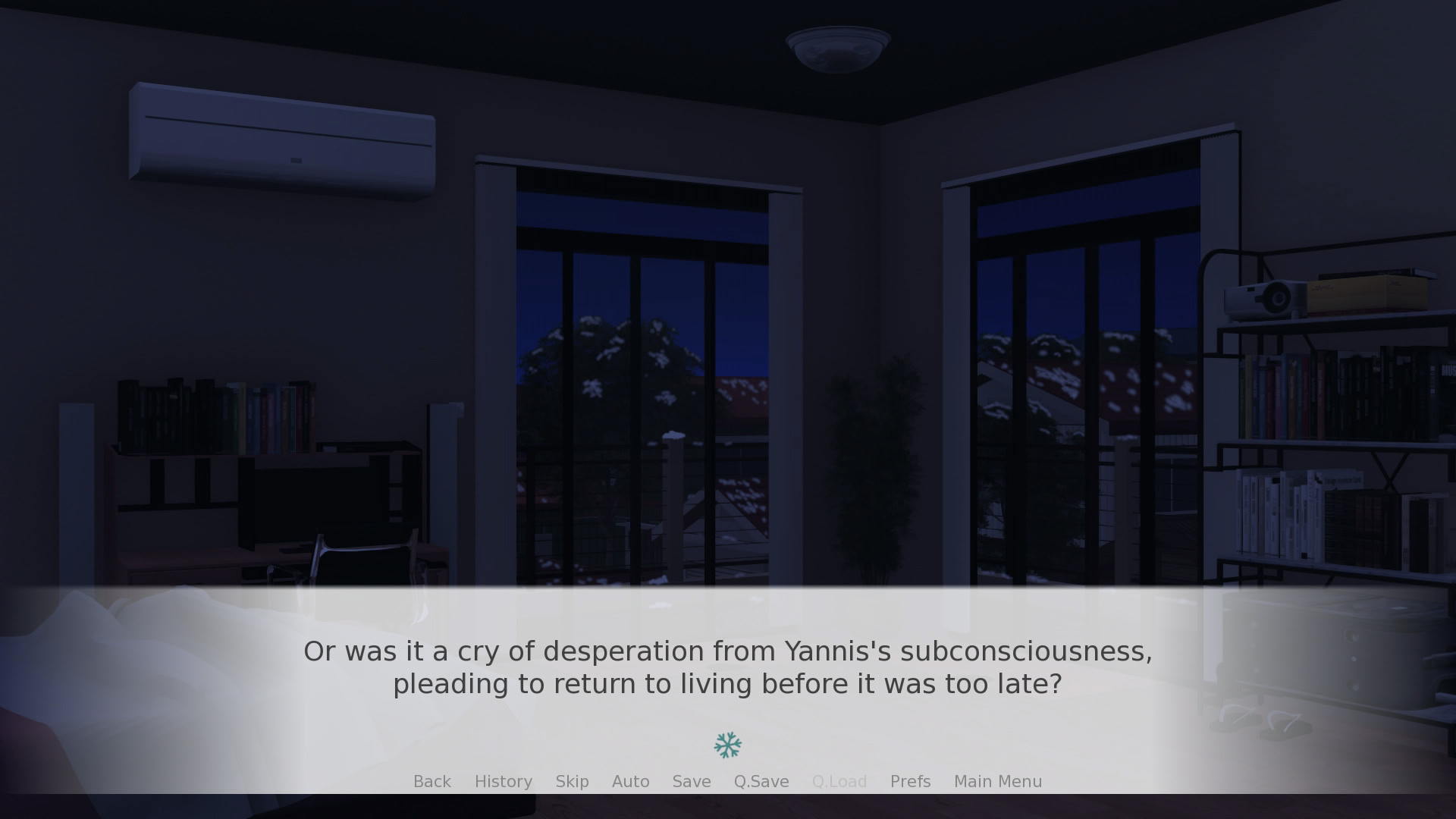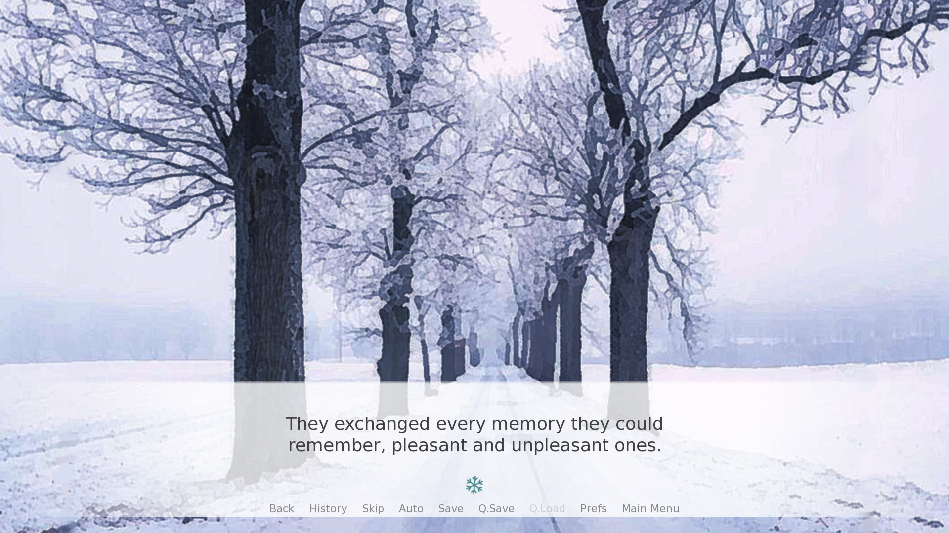 On a late afternoon in December, you meet up with your girlfriend for a walk through the snow. While walking, you two bicker and exchange memories. Funny, embarrassing, everything... until you reach your destination... Itch.io]
