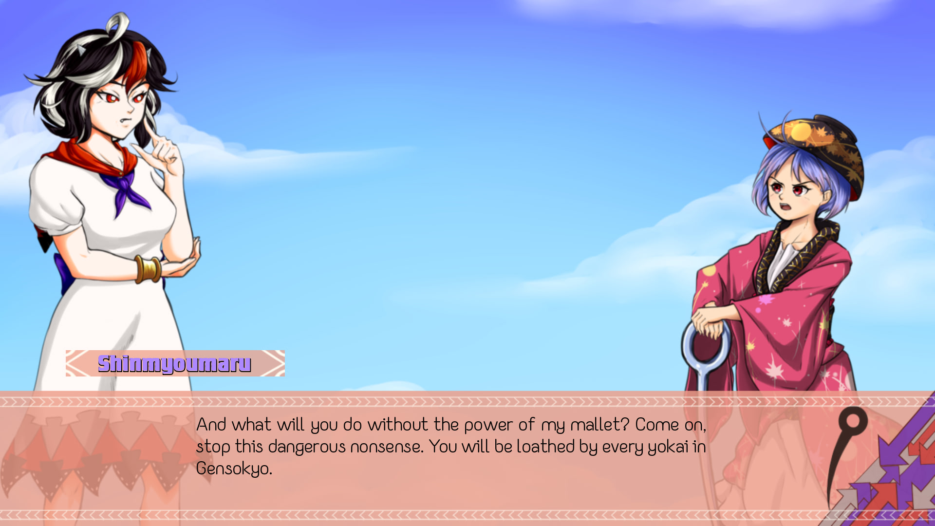 The game takes place after the Impossible Spellcard event. Seija, defeated now comes back to the Shining Needle Castle to find Shinmyoumaru. She is sadened by her failure and wishes to convince Shinmyoumaru to give her the power of the mallet. Once again, Seija will try to take over Gensokyo.