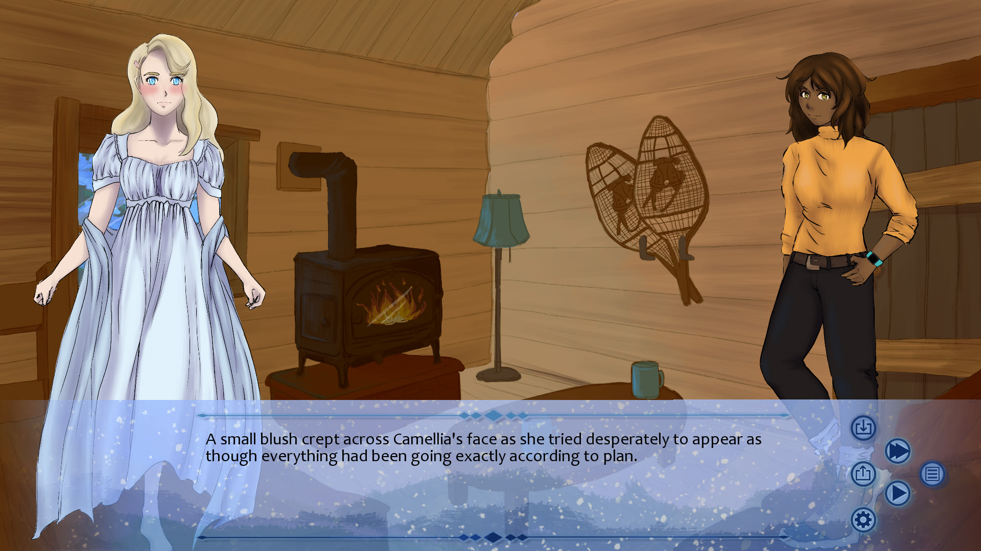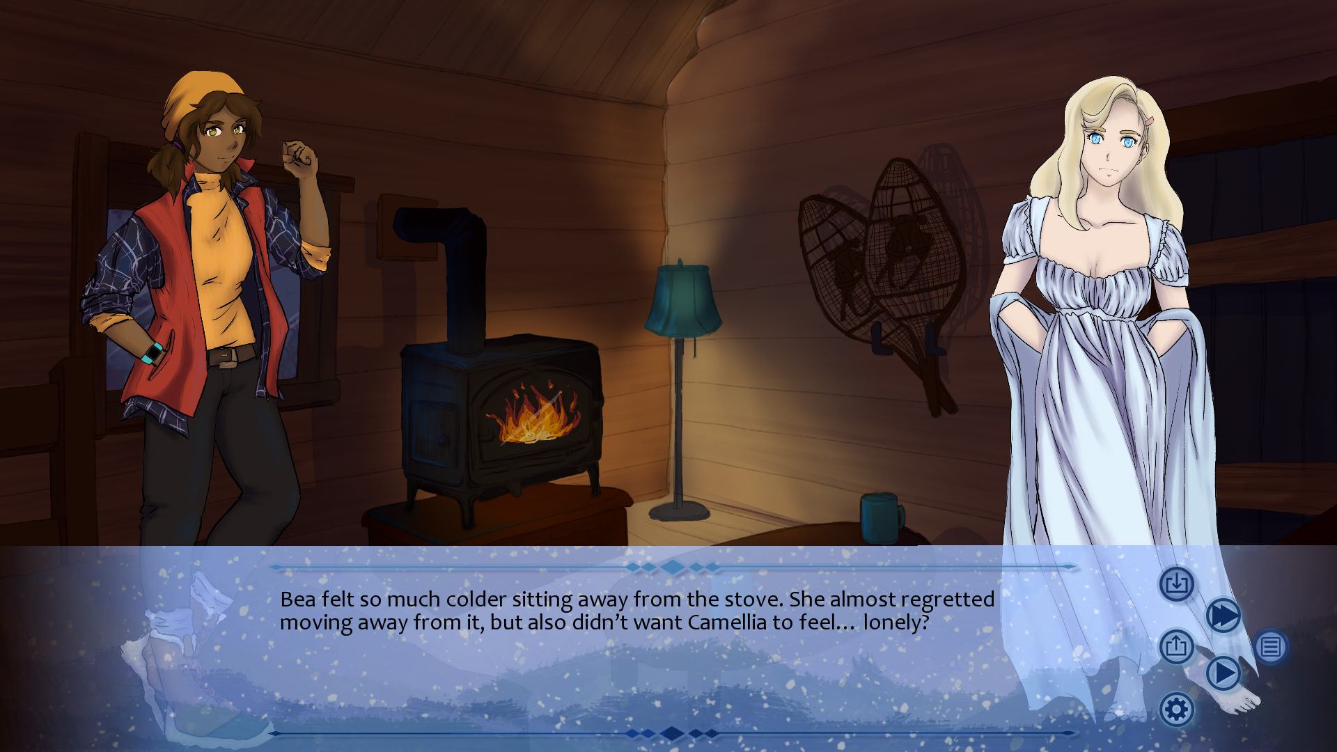 Bea, a city girl who loves snow, goes on a vacation to a snowy mountain to hike the trails and soak in the serene late winter landscape. She meets Camellia, a regal woman with an air of mystery, when she wanders off the trail. What could go wrong? Itch.io]