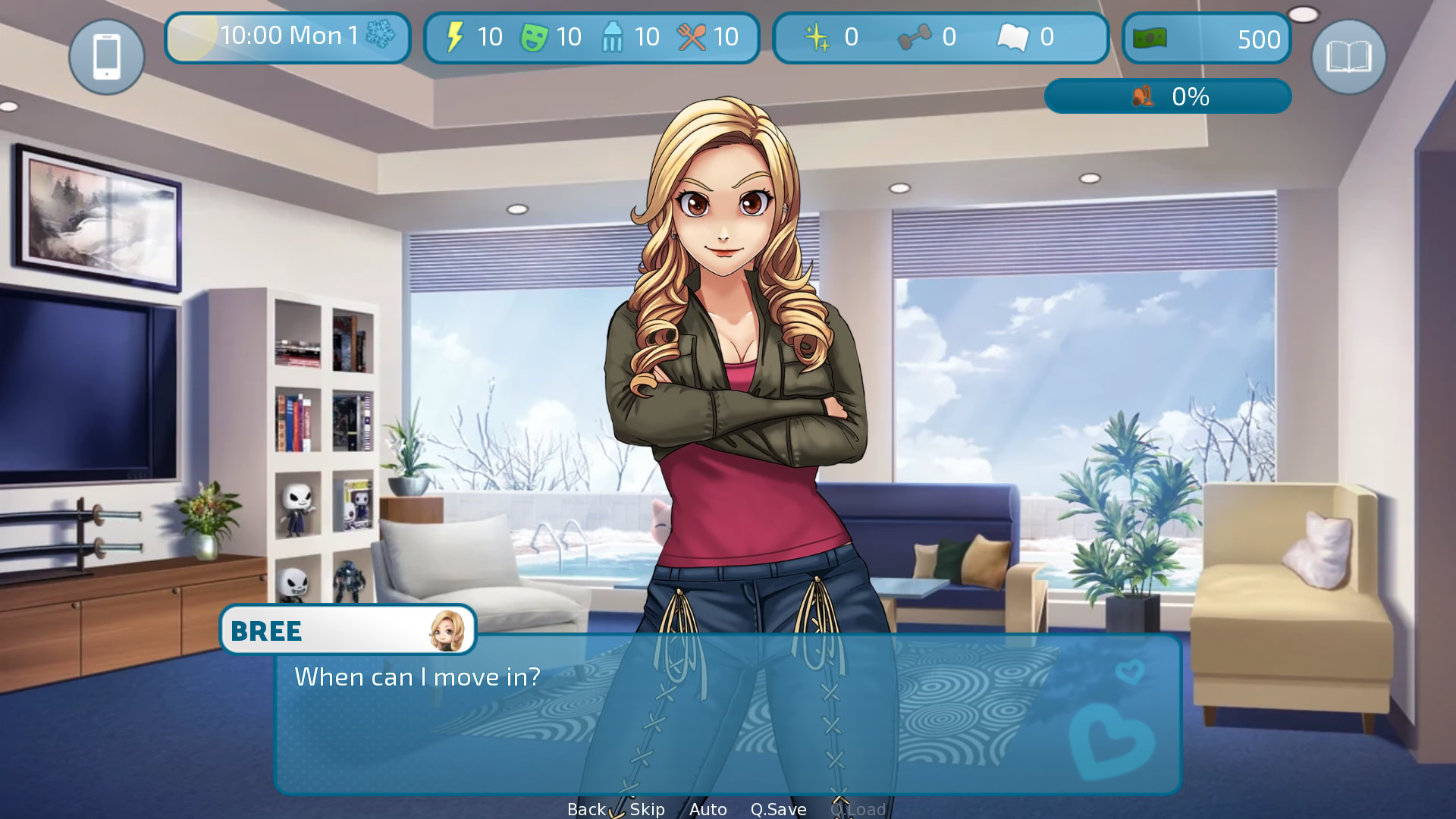 Bree is a college freshman, penniless and a bit socially awkward. Help her find a job and succeed in her studies to become a successful woman or lead her down a dark path of drugs and debauchery.