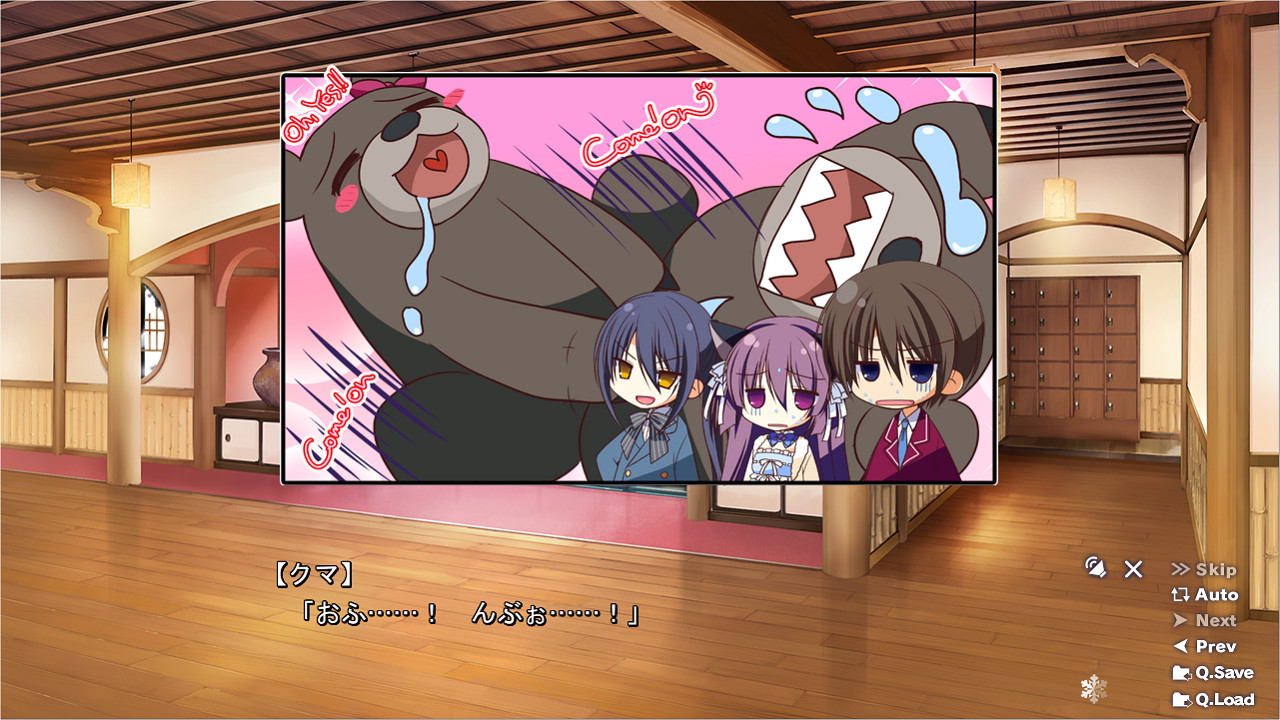 There were four members: his classmate Taruhi who’s also not good with the cold weather, the ultimate trouble maker ‘Hurricane’ Kanon, everyone’s onee-san (and heater) Shizuri, and the winter-loving aptly-named Yuki. They invited him to join them at the club’s exclusive dormitory, the former ryokan Tougenkyou. They continued to invite him no matter how many times he refused, so he asked them why they wanted him to join so much.