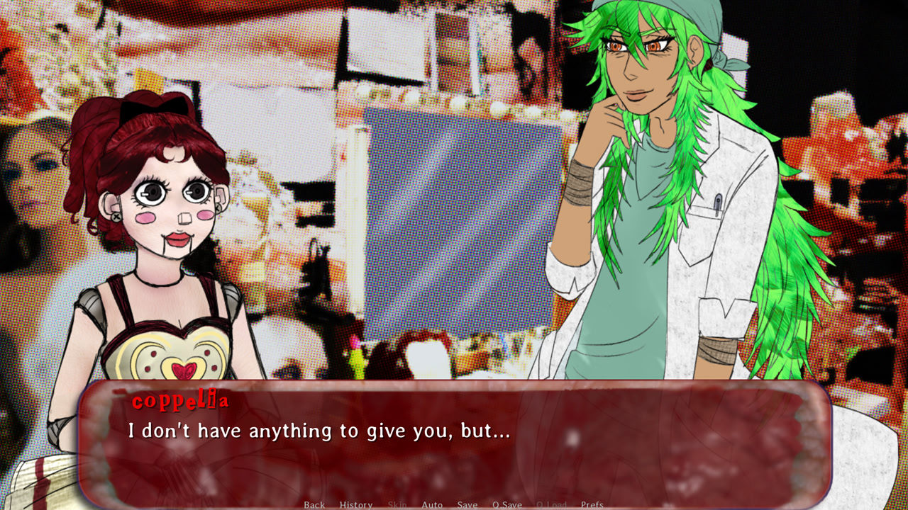 Coppelia, a human-sized puppet and the star of the traveling Circus Reverie, fell in love with a human woman. Every night, she saw her in the audience, and soon, she could think of no one else.