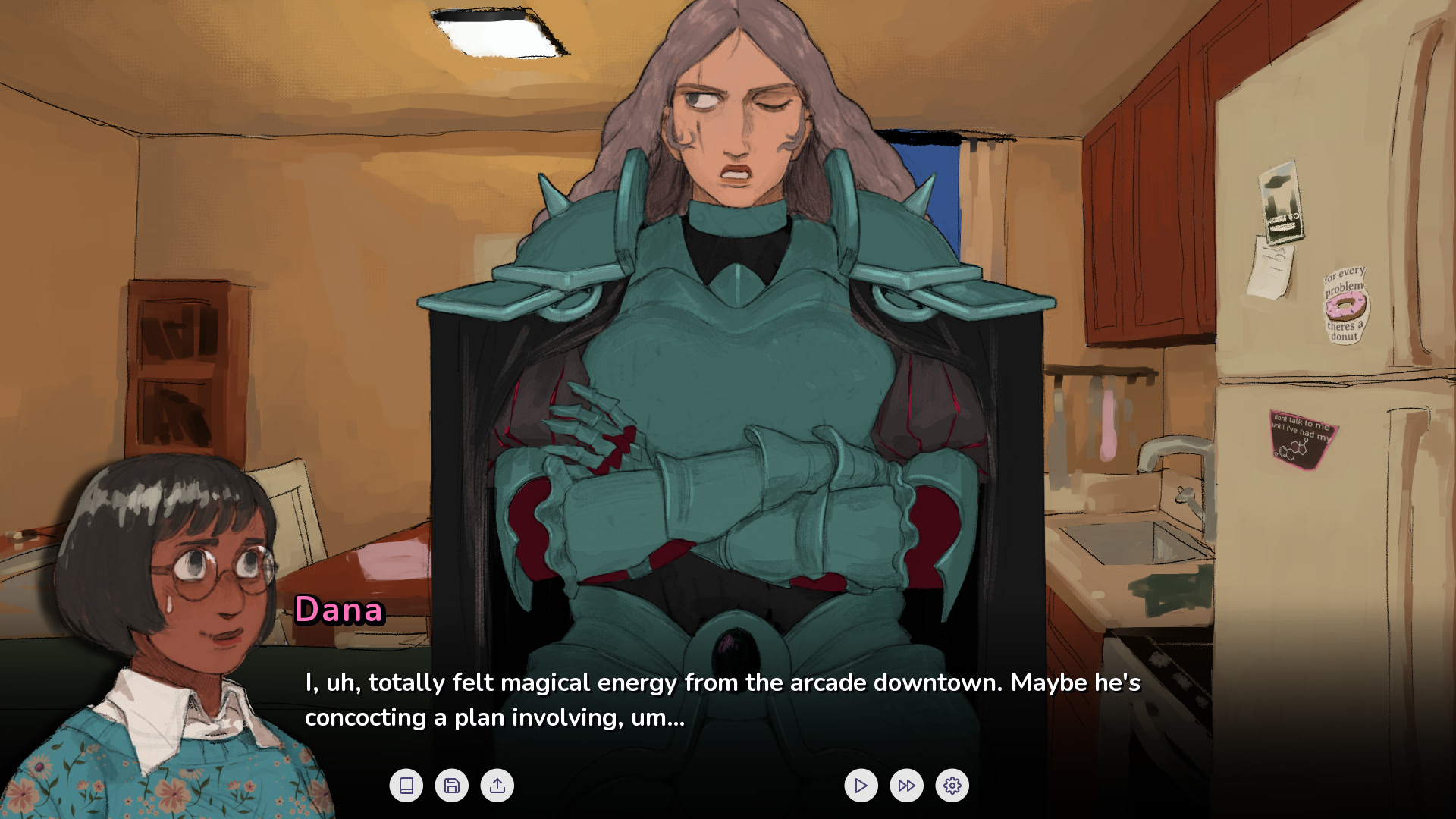Dana is a mostly normal girl living a mostly normal life until one day, Brunhilde- a fearsome Dark Knight from another realm- tears through a portal in the sky and asks Dana to guide her to find and slay the mysterious Gray Wizard.