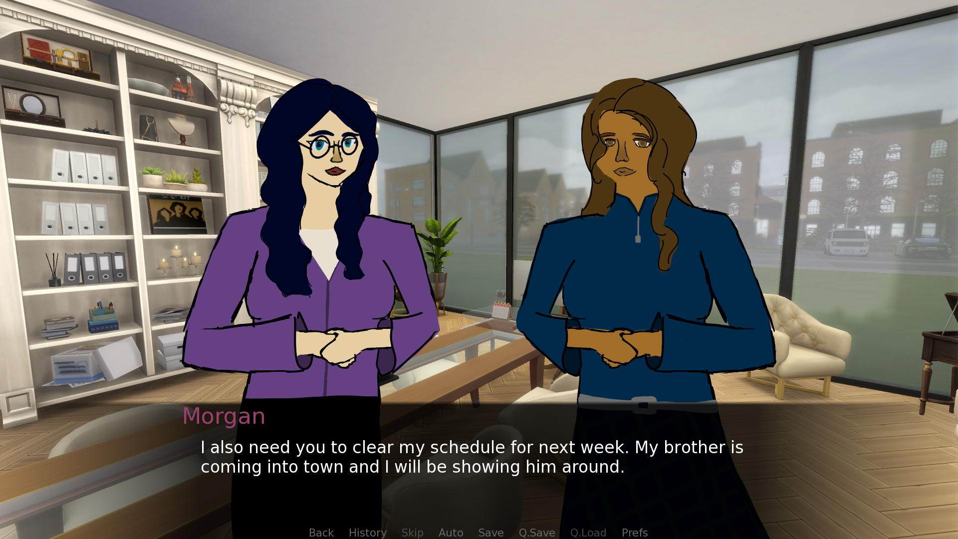 In this kinetic visual novel, you play as Gwen, an office worker at Pendragon Corporations. Navigate your feelings for your coworker and boss while glimpsing the past and future.