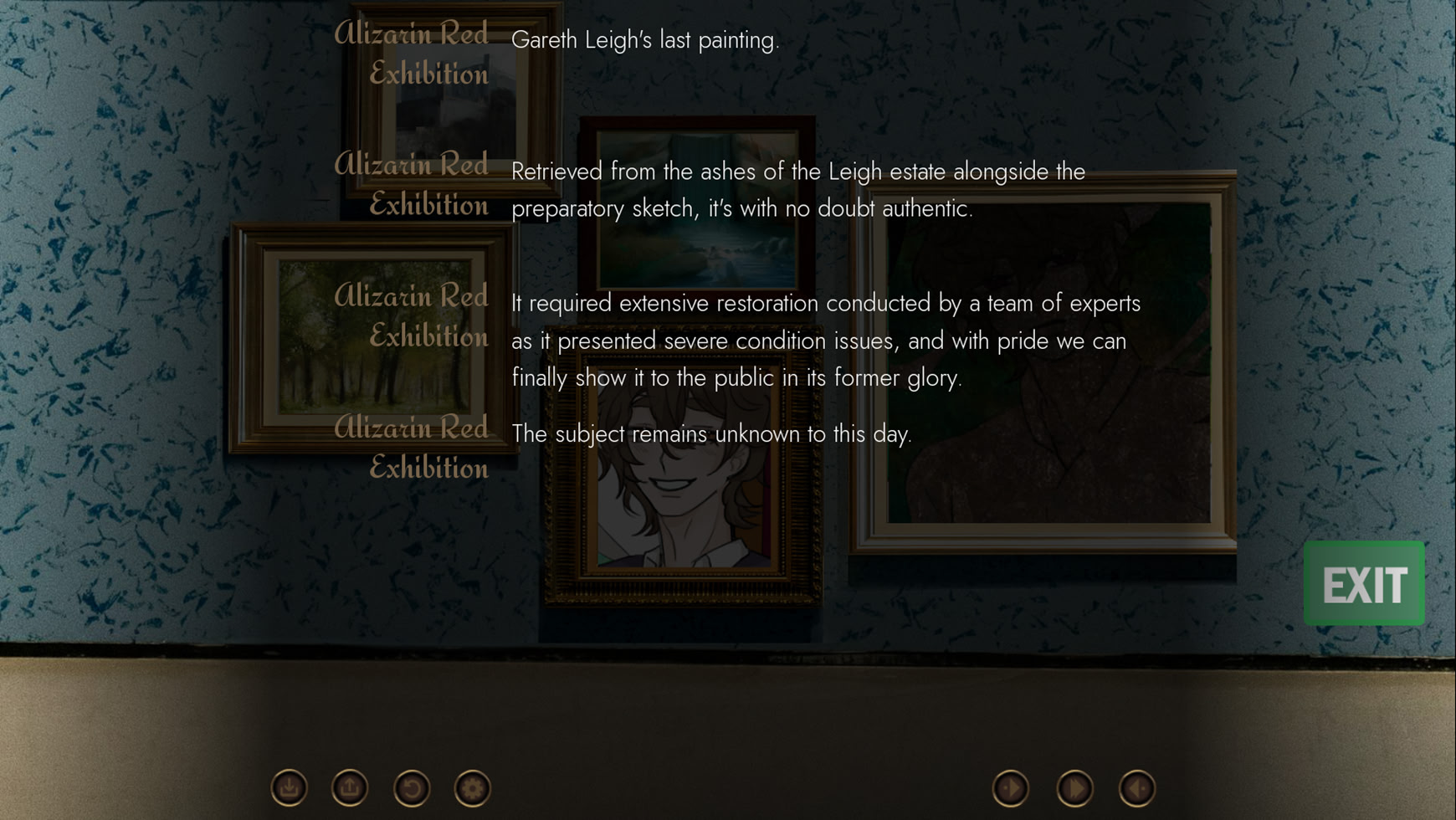 Good evening, everyone! It is my great pleasure and honor to welcome all of you to the Alizarin Red Exhibition. This year marks the 100th anniversary of the painter's death. Explore Gareth Leigh's masterpieces in the current exhibition, see his development as an artist and dive into his world. Itch...