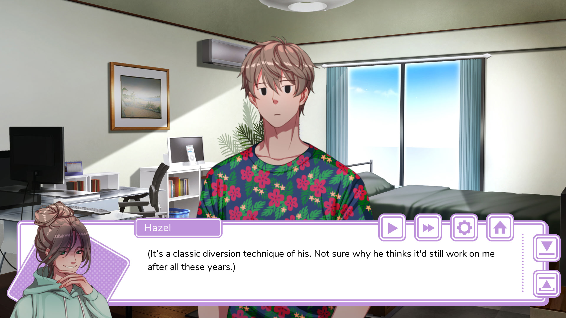 Trouble Comes Twice features two playable protagonists, twins Jace and Hazel. Already halfway through their university years, the twins realize neither of them have ever been in love before. Like any other not-so-rational person, the twins decide to turn finding love into a competition.