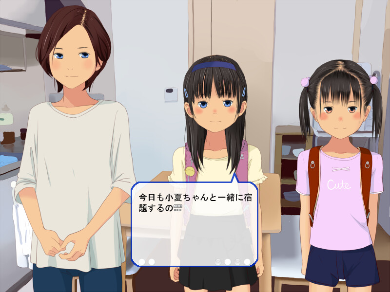 Short story in which without their parents' supervision, Shiori and Konatsu have lesbian sex.
