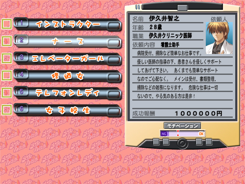 Two heroines "Mika" and "Kasumi" work at a temp company "Maid in Agency", which is to send maids. They work hard for their customers, using their bodies. They sometimes receive erotic requests, but they can't say "No" because they are specialists. Here comes another request! Get ready! Enjoy costume play erotic scenes such as nurse, department store attendant, sister and so on.