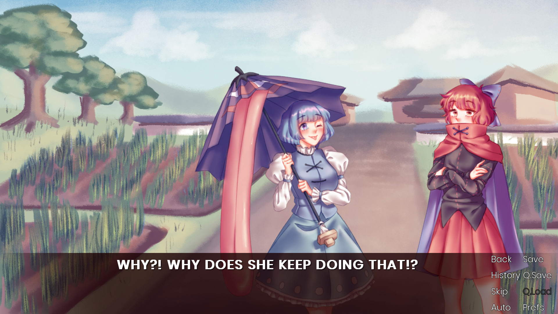 Sekibanki has a date coming up, and her friends insist on getting involved. Can she win an umbrella youkai's heart in spite of their meddling? And will she be able to say what needs to be said before the world forces her hand? itch.io]
