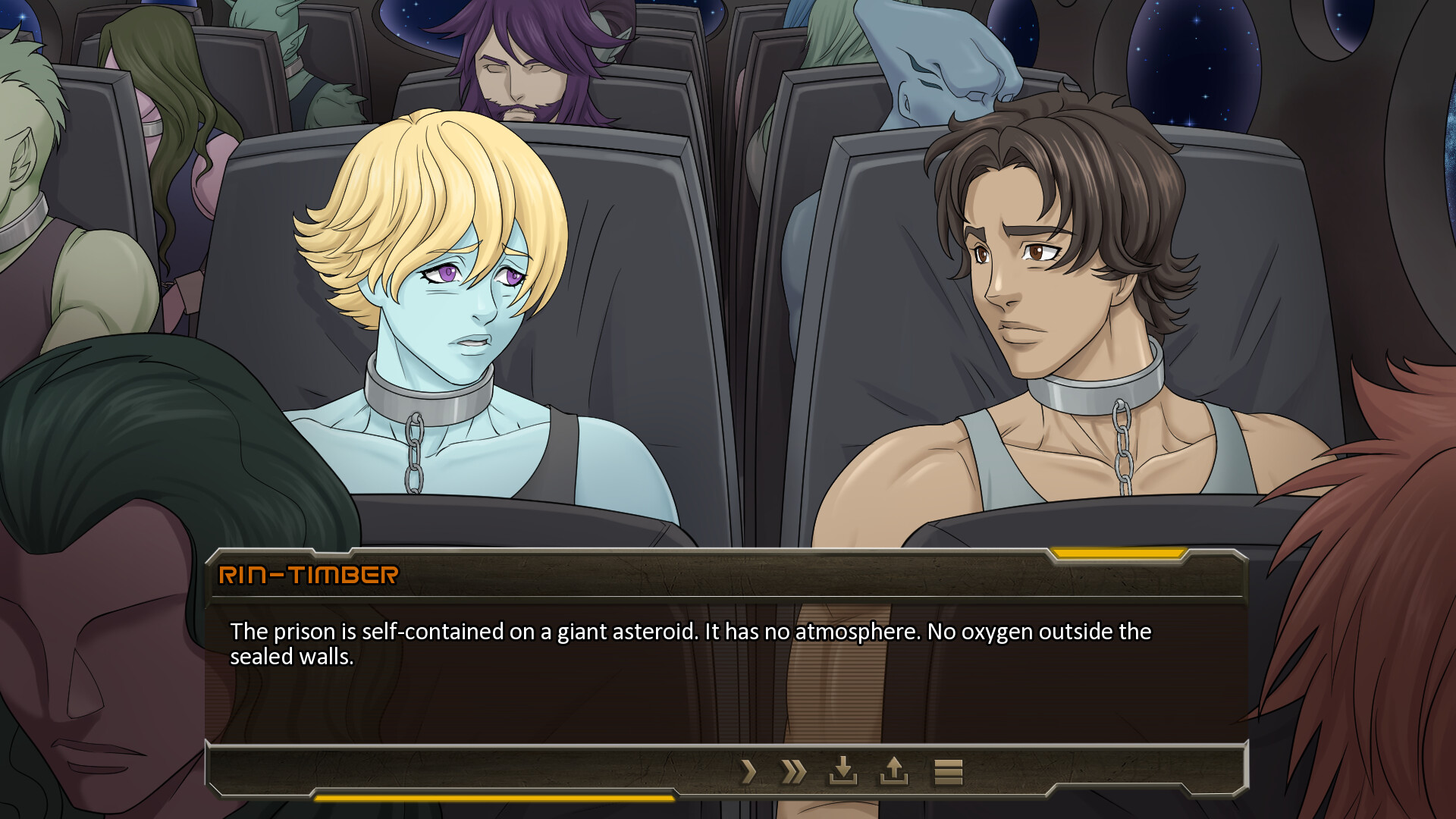 Earthling Miguel Sanchez has been sentenced to life at Alpha Hole, a notorious space prison. His survival depends on using his charms to convince a powerful ally to protect him. Itch.io]