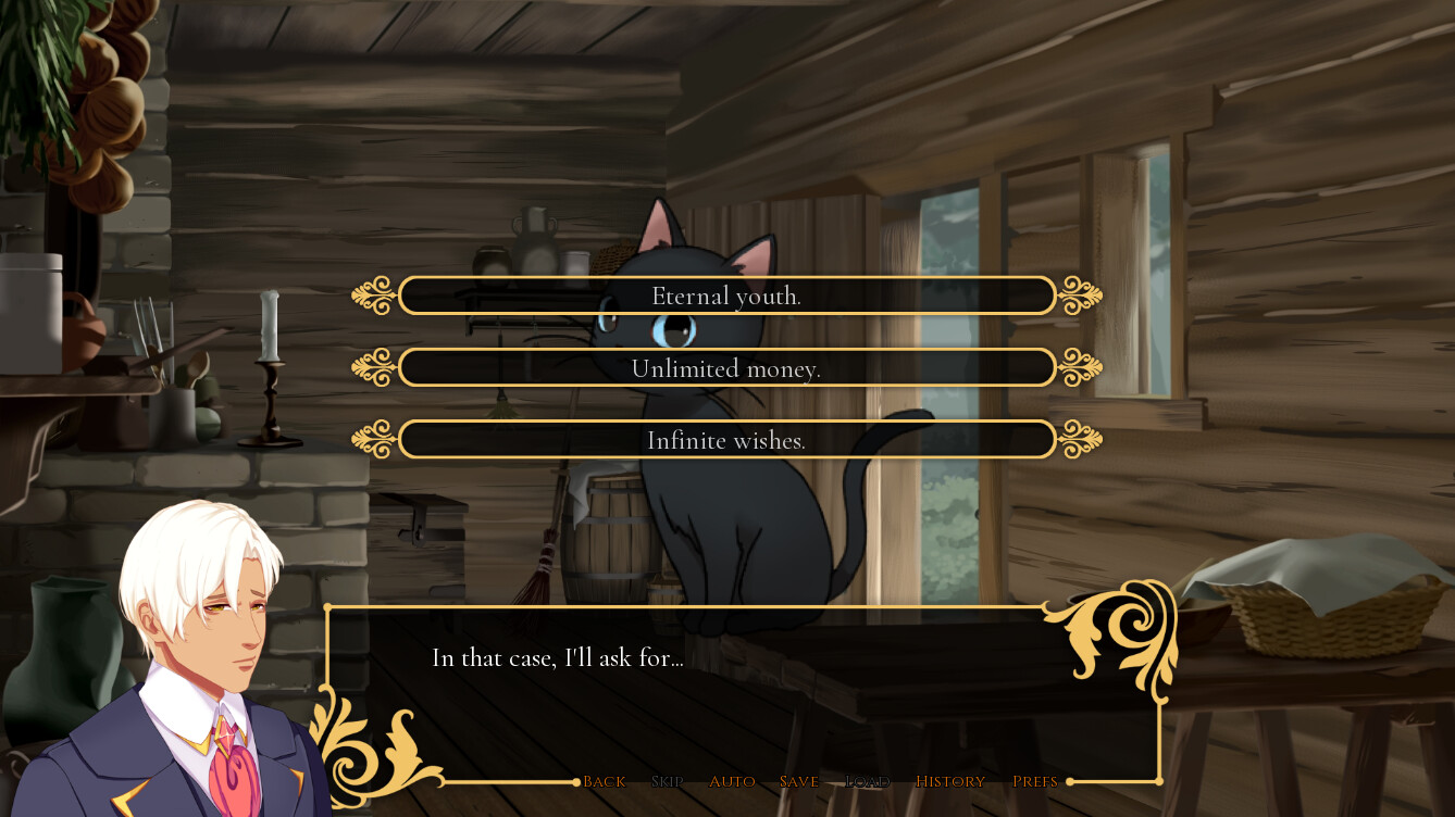 Turns out, the cat was actually a great spirit. It’s indebted to anyone who saves it, so it grants the human’s deepest desire.