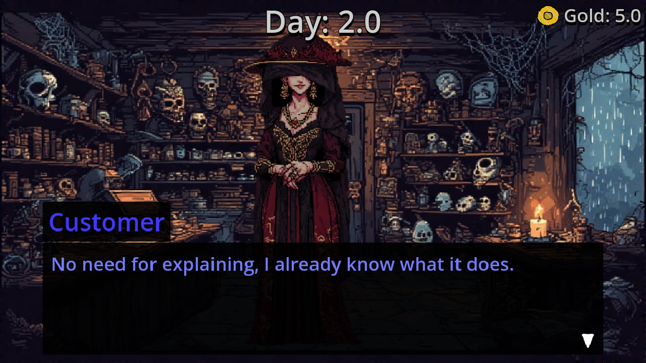 After several jobless months, you decide it’s time to look for work. Your search leads you to an unsettling website: an antique store seeking staff for five nights. The pay is attractive, so you take the offer. Itch.io]