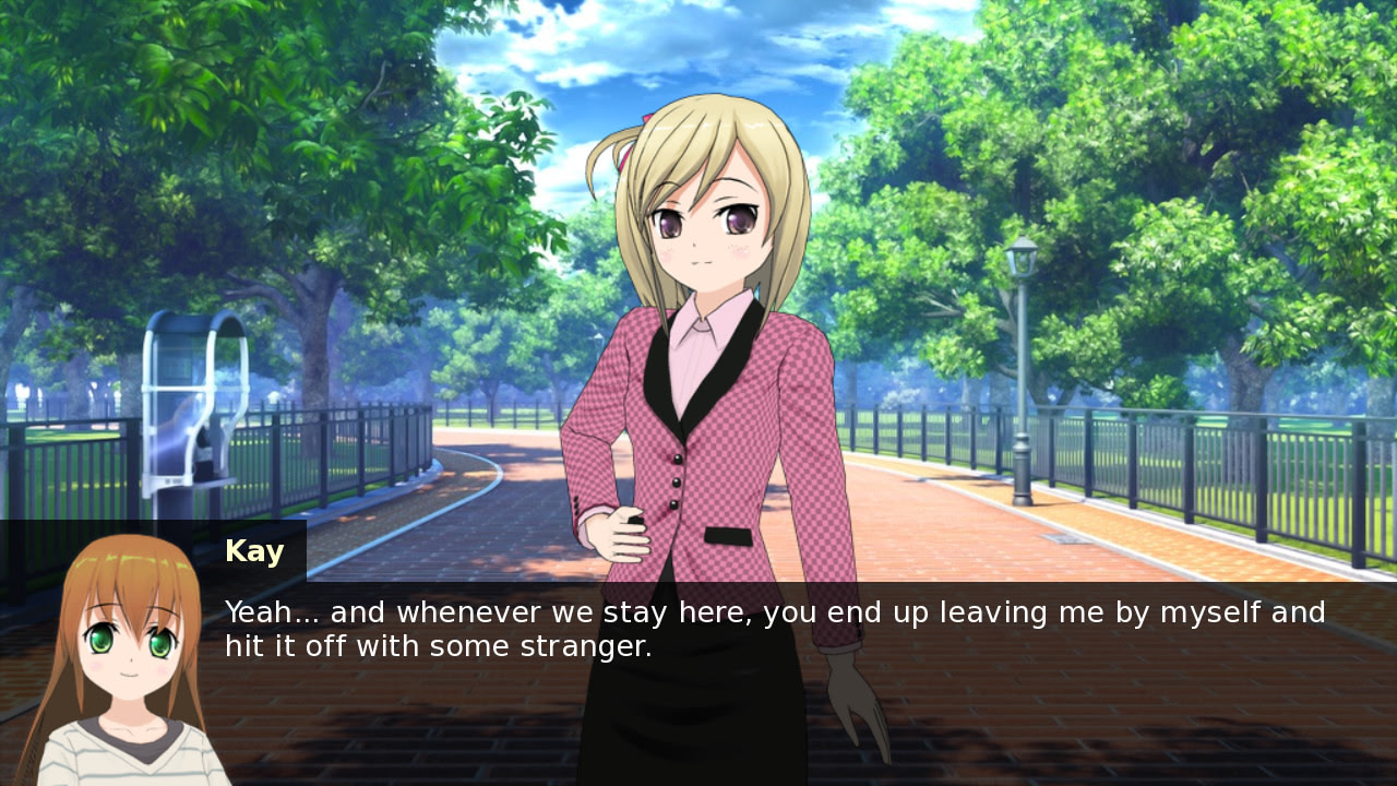 Kay is a woman who never had a boyfriend before. Her best friend Rina always dumps her boyfriends after getting all the "love and money" and teases Kay for being a virgin for many years. Because Kay never had a boyfriend before, Rina always makes up games that has to do with Kay interacting with strangers... for her entertainment.