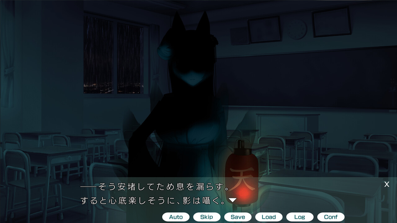 This is the debut game by North Box. Yuutarou is an ordinary student at Yatsuya Gakuen with a slight interest in the occult. It was the last day before summer vacation, and he still didn’t have any special relationships with the girls in his class. That all changed when his osananajimi Yuumi invited him to come to the school that night for a ‘courage test’.