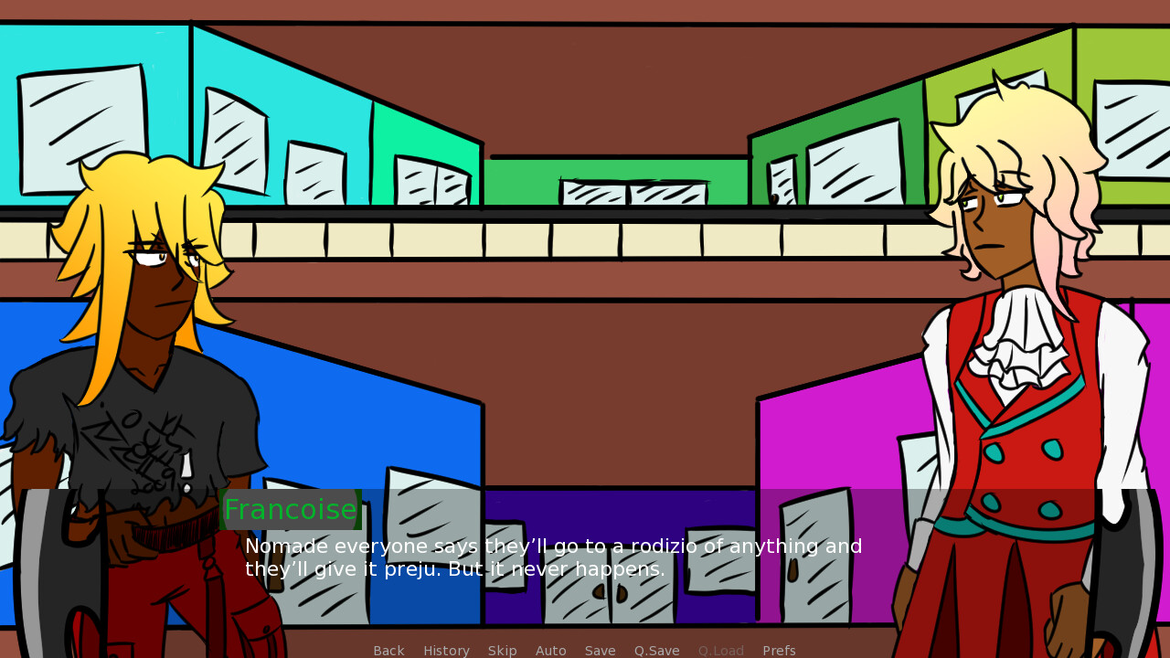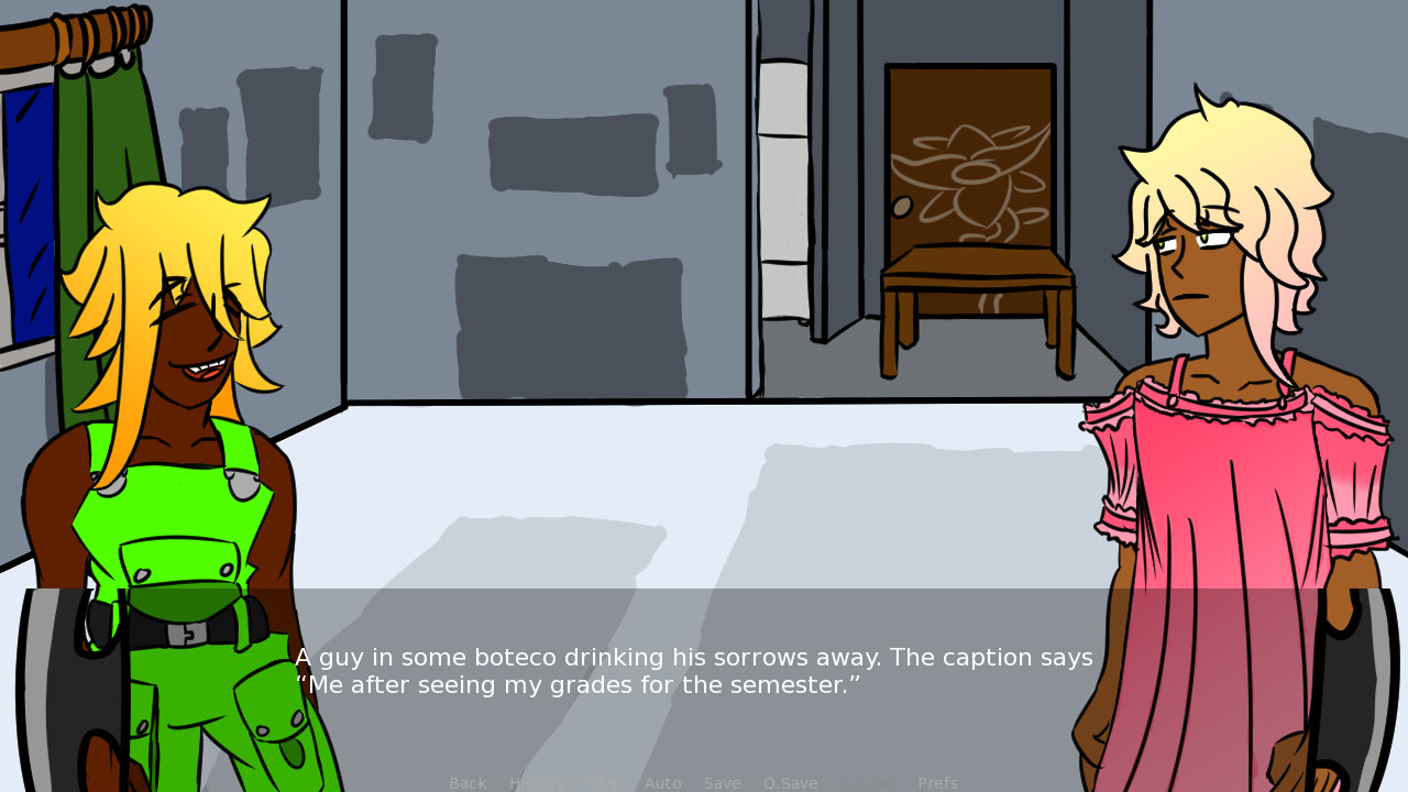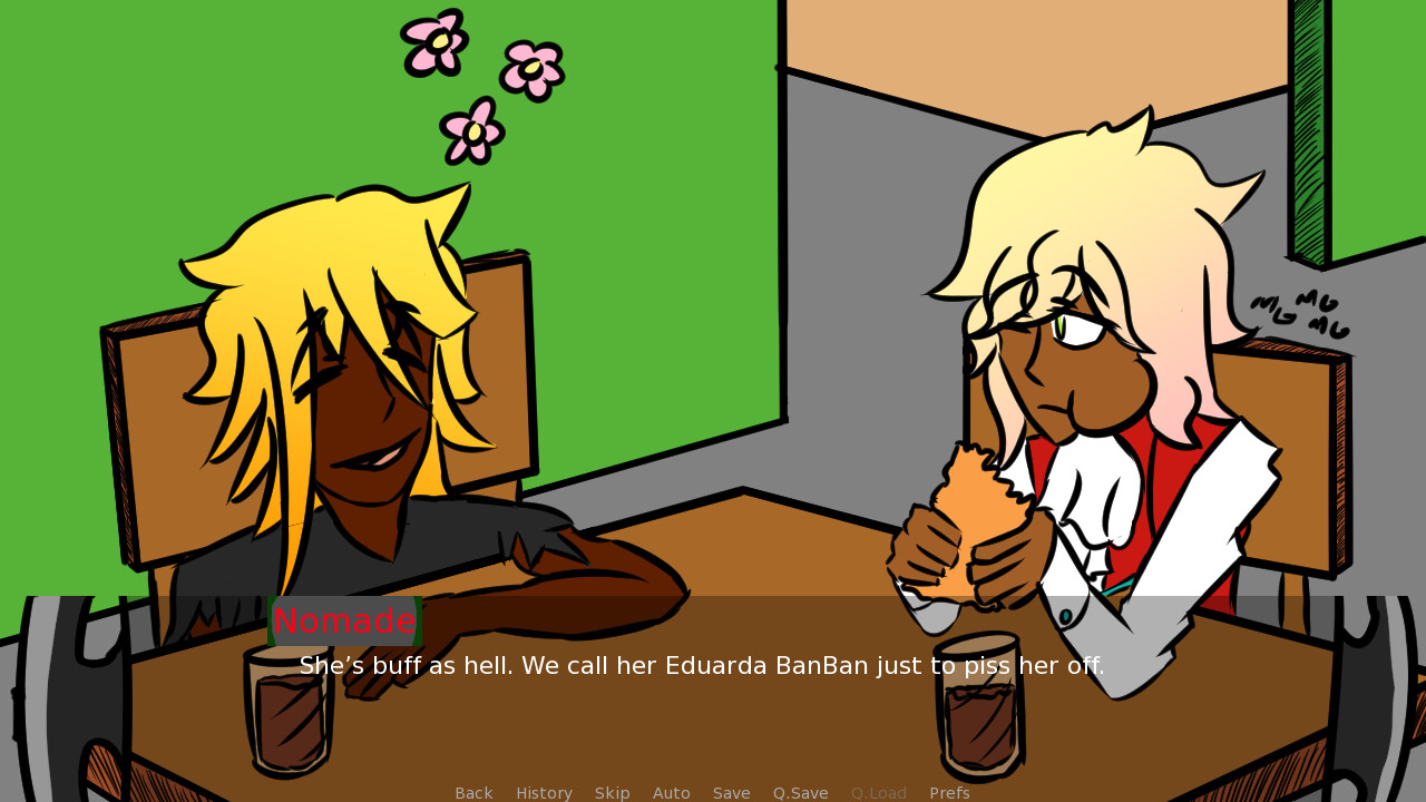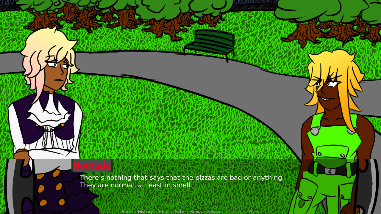 Fran is having a interesting week it seems. She found out that her best friend Nomade is not only a half-demon/half-human creature known as a pseudo-demon, she is also a demon hunter! And they kissed! More than once! This is being a very intersting week, what will happen next? itch.io]