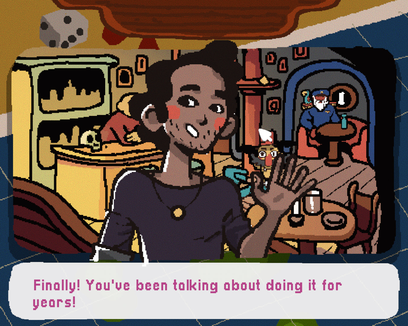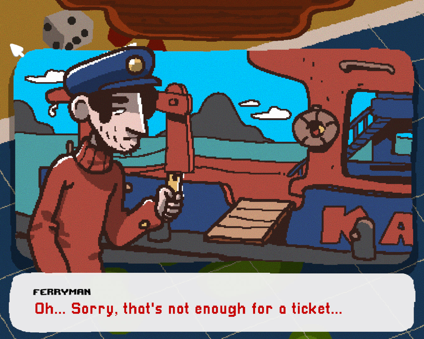 You set out from Rose Hill Cove – what will you choose: a ferry trip to New Chagos, a wild night with your friend, or a treasure hunt beneath the waves?