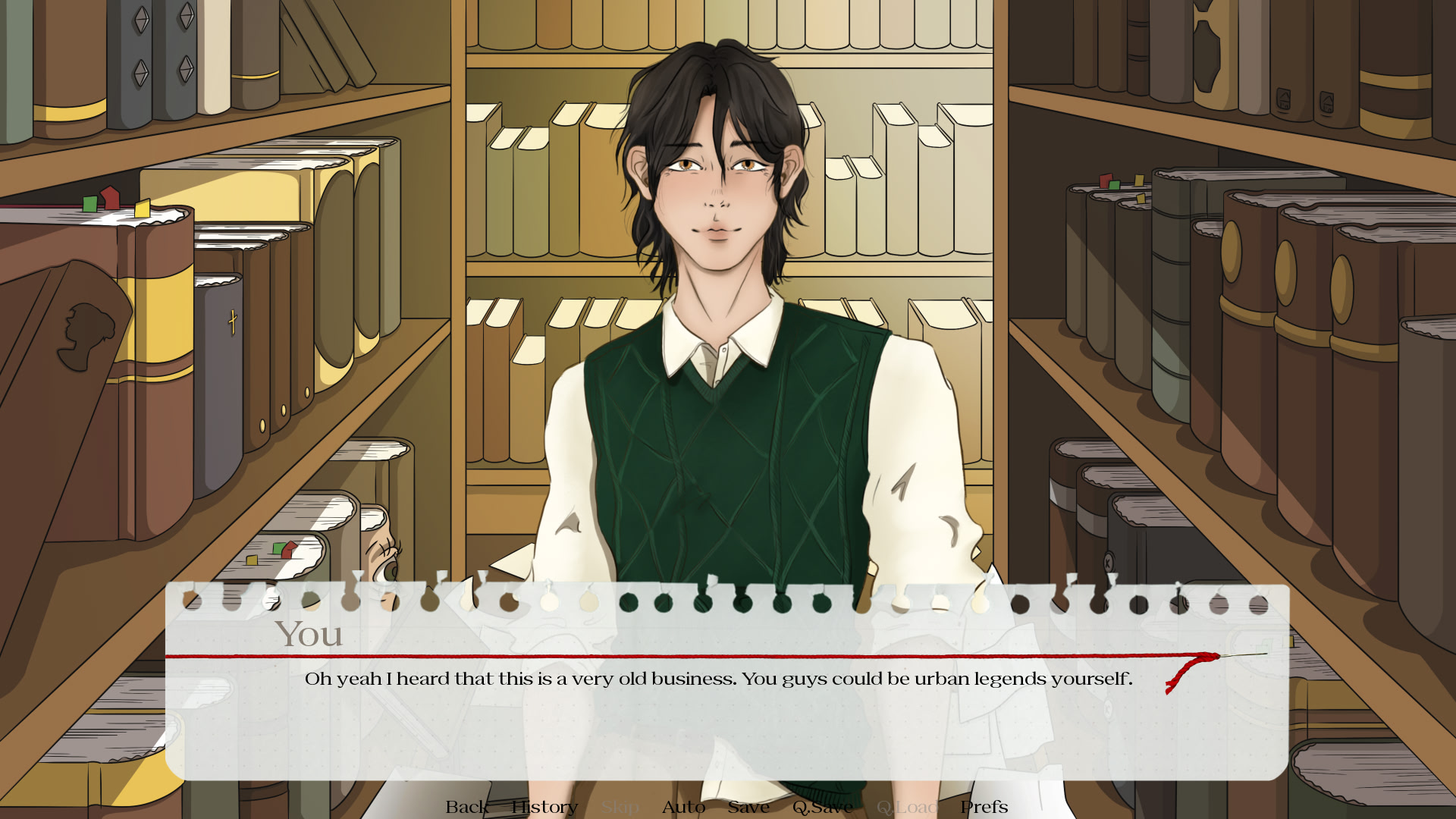 Drawn to the eerie charm of the area, you stumble upon an old, family-run bookstore and meet a mysterious, striking young man who might know more than he lets on.