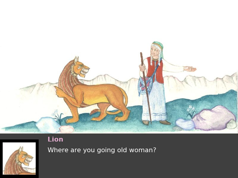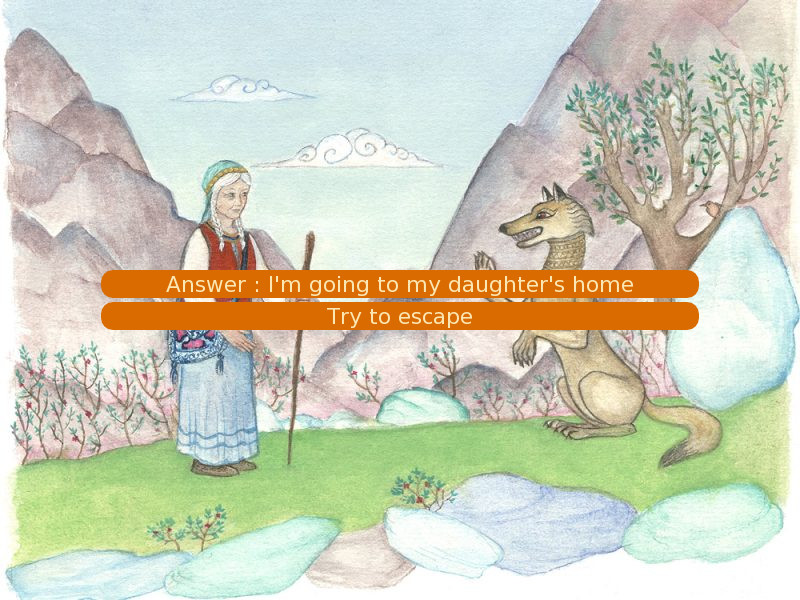 Once upon a time there was an old woman who had three daughters. All of the three had married and left her house. So she lived alone. One day she was so bored of loneliness that she told herself: "Since my youngest daughter has married my house has gotten so dim and silent. I better go and pay her a visit."