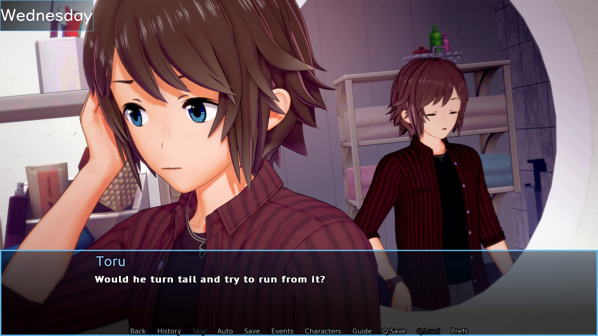 Dissonance is an on-going visual novel where you follow Toru Hirai as he attempts to readjust to his life after a coma. Throughout the story, you'll find yourself interacting with and deepening your connections with several characters as you explore Ametohi. And there's no need to be picky about where you go and when, after all, you'll have plenty of time!