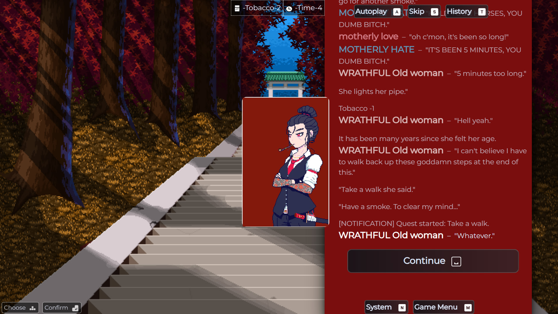 A short interactive story set in the Fantasy Imitation universe about an old woman taking a walk through hell.