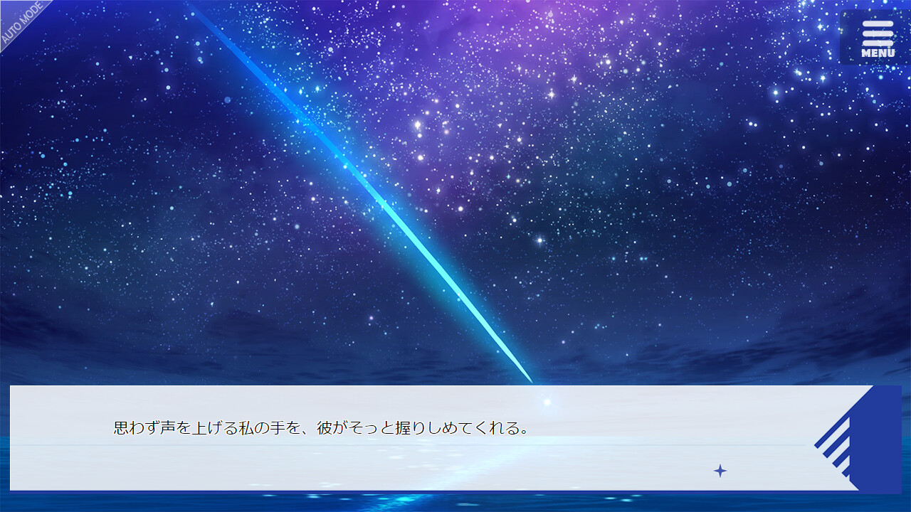‘This is my first _____, after all.’ There’s a famous island from which you can see a comet that makes wishes come true once every few decades——Hoshinami island. You are a third-year high school student who was born and raised on this island surrounded by the emerald green sea. With your childhood...