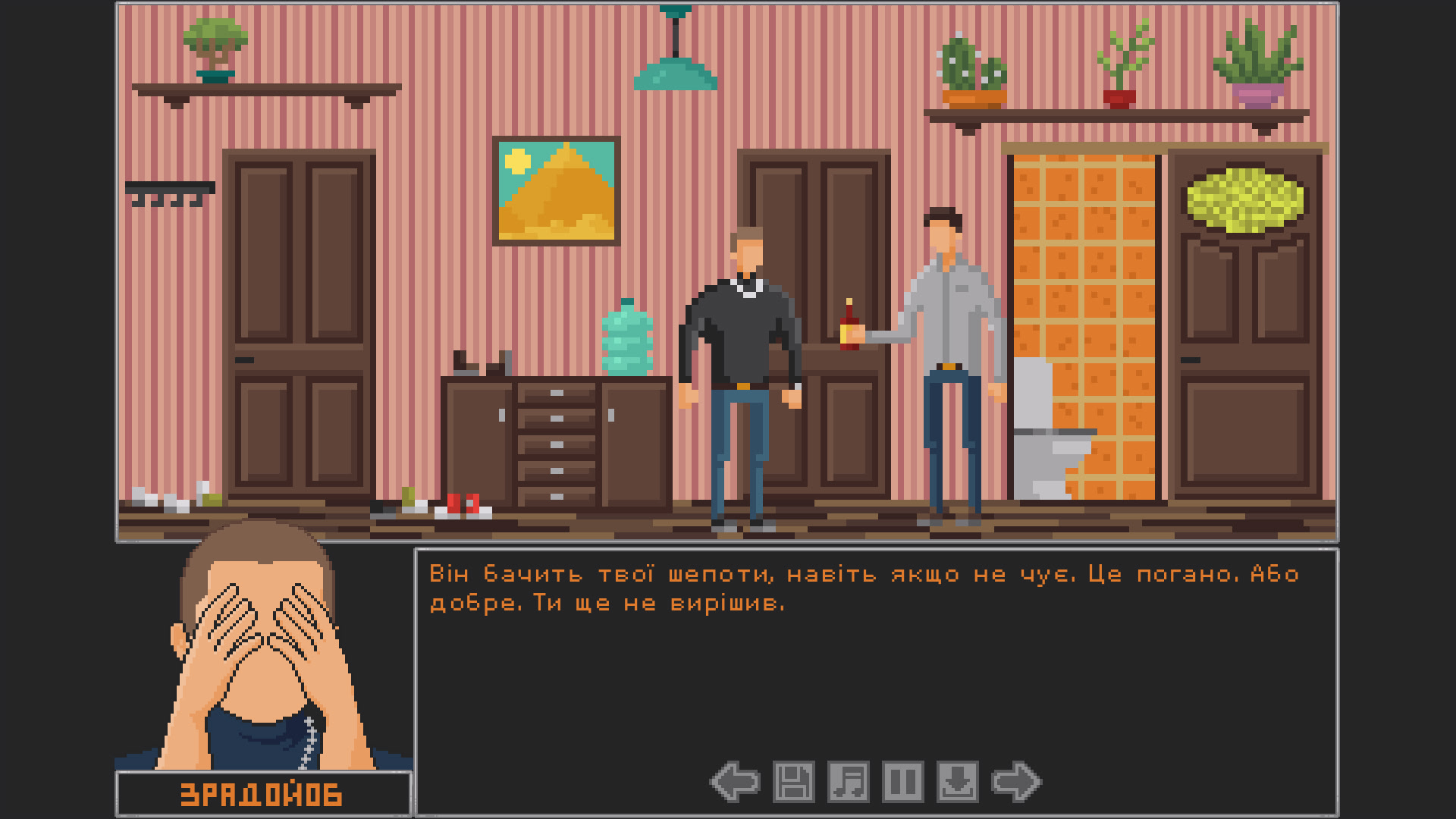 Dimon tried to leave his old life behind. One night with old friends reminds him of what he lost. Inside, three voices whisper, argue, and push him toward chaos. Every choice shapes his mind – and the reality around him. Itch.io]