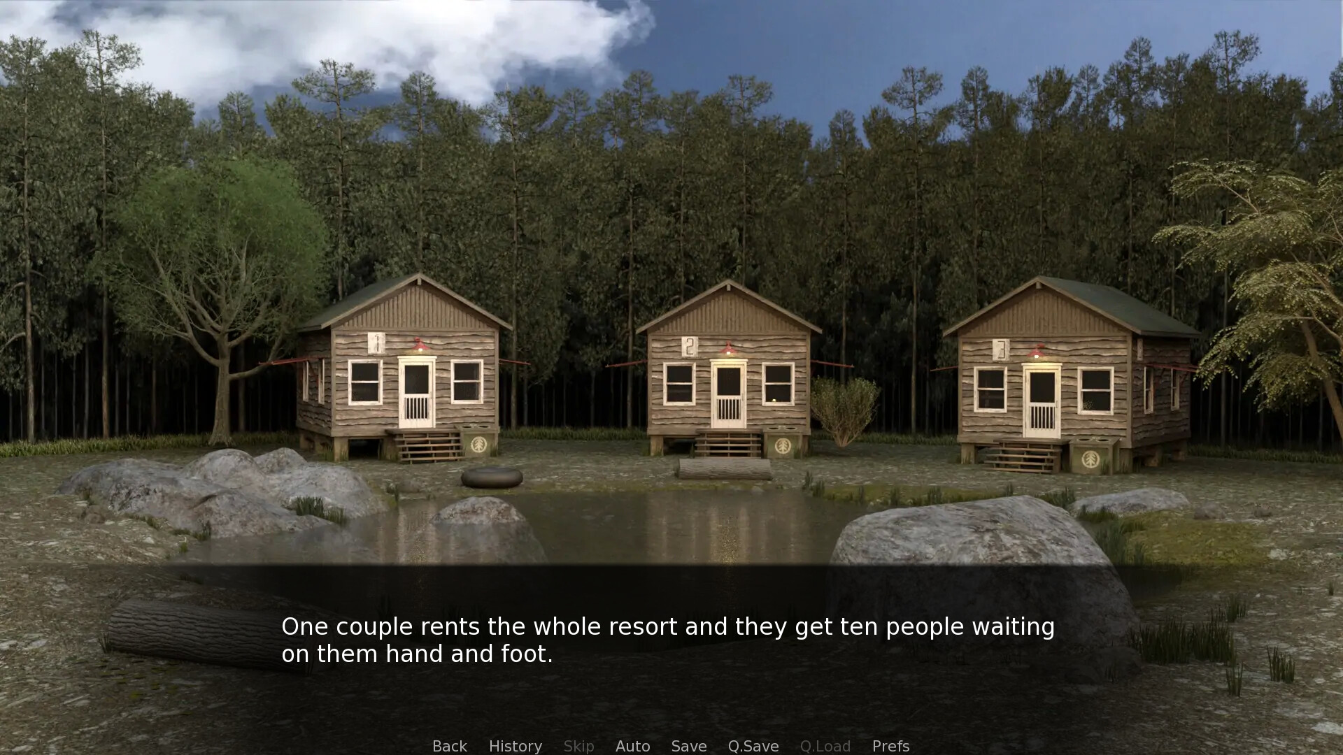 A group of college girls who flee to a mountain resort to avoid a terrible storm. The caretaker (you) must do everything he can to keep them safe from the storm, each other, and someone that may or may not be lurking outside in the woods
