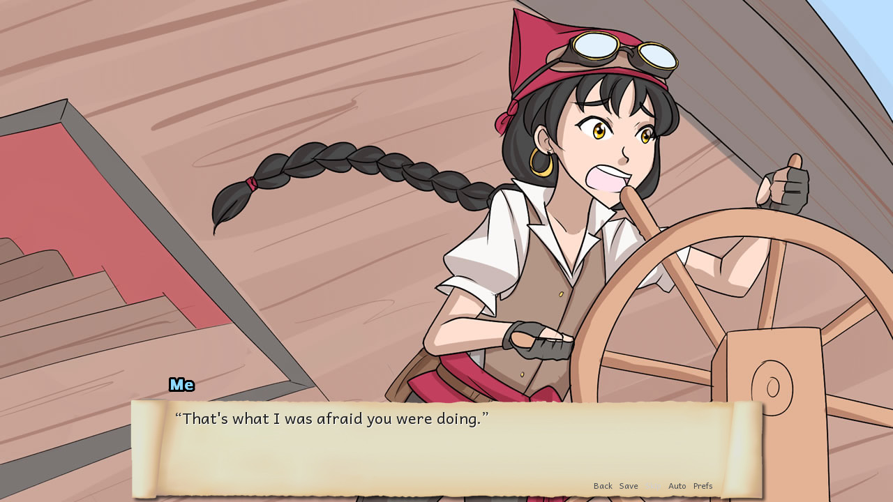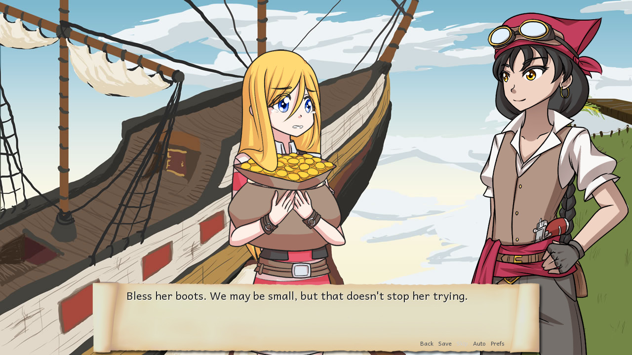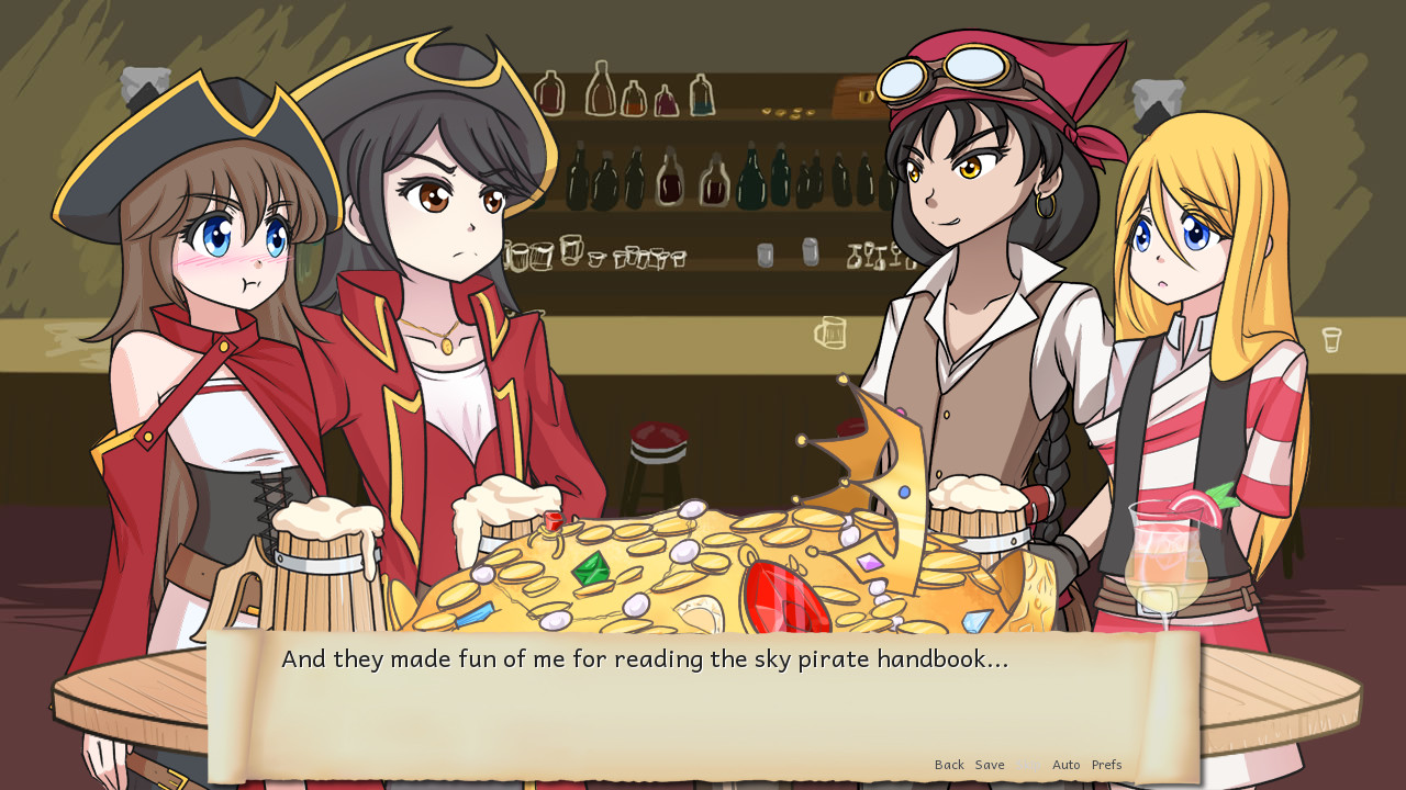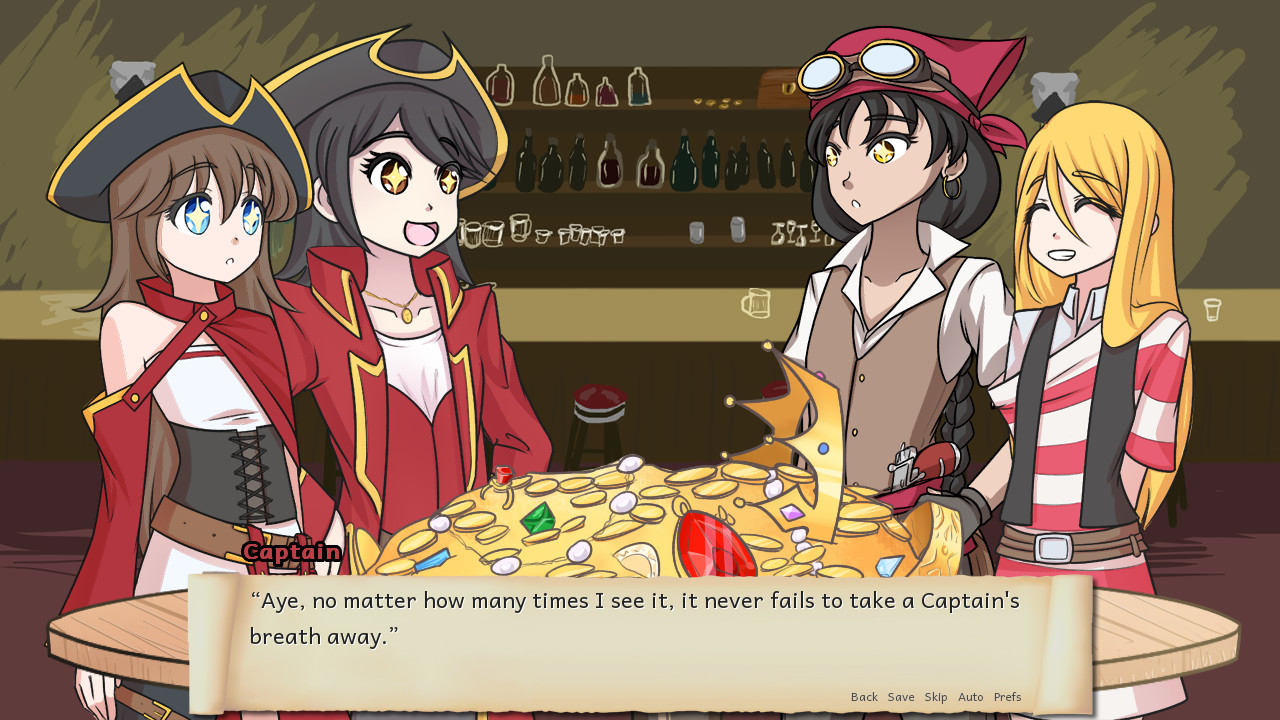 A more terrifying band of pirates you'll never see! The crew has just scored its biggest plunder yet. Now we join them as they discuss who should get the biggest share of the loot. Lemma Soft Forums] Created for NaNoRenO 2015.