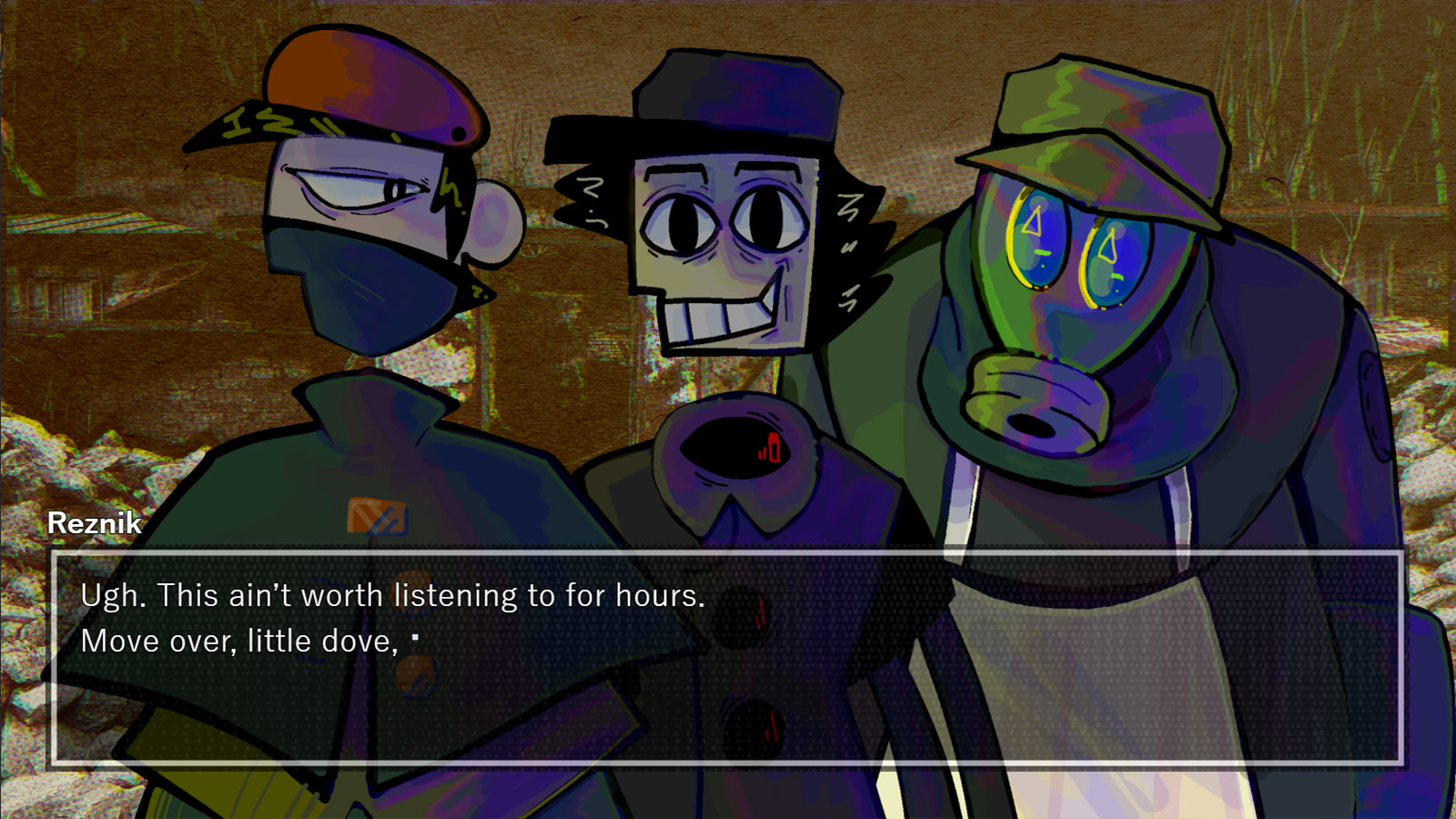 A small troop of cryptids find themselves in a struggle to survive after the war has ended. With dwindling options, they march forth from the fields and into the unknown in search of prey. itch.io]