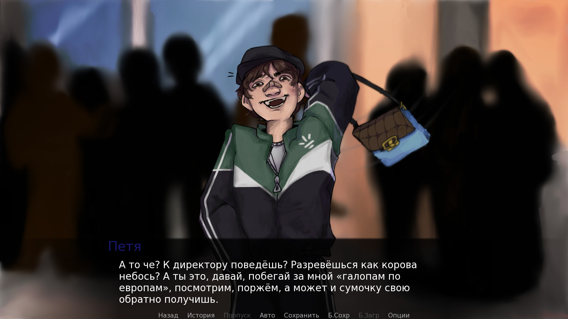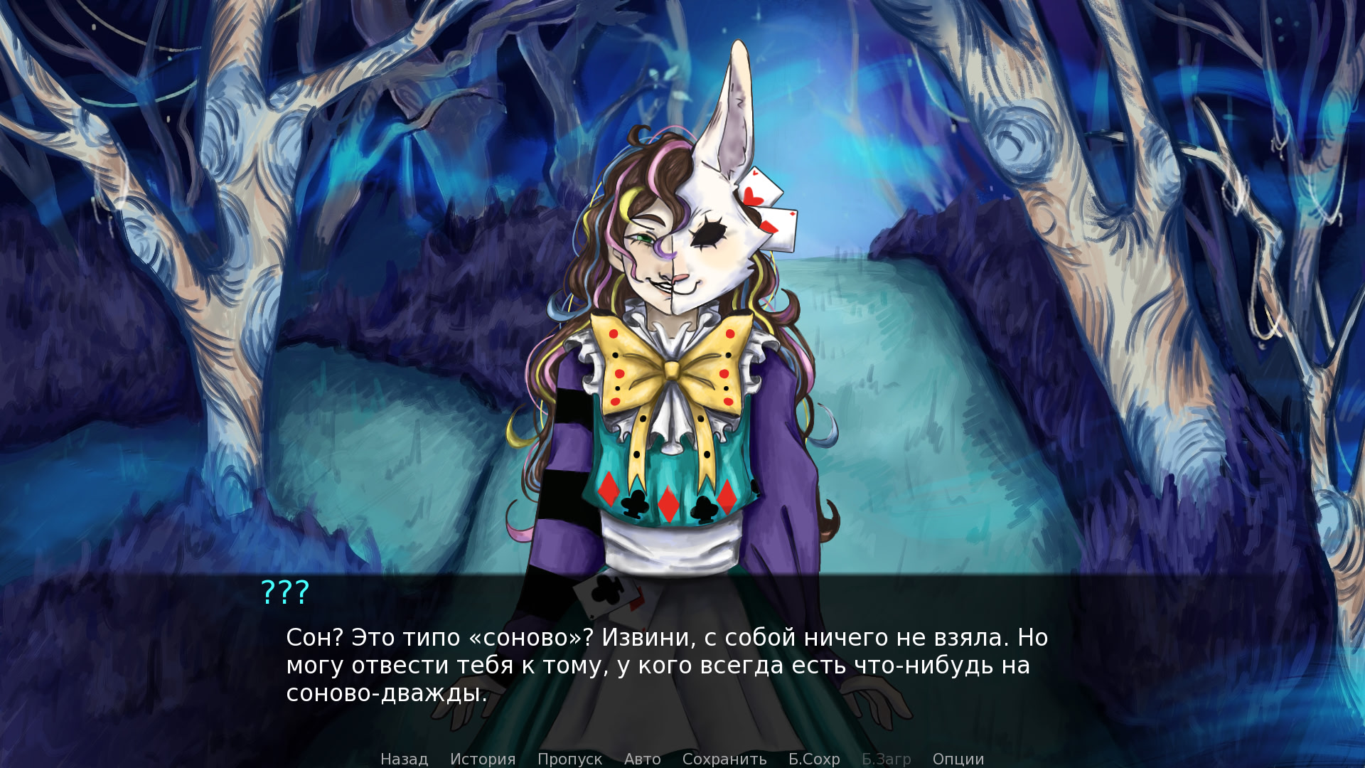 A single slip sent Arseniy into another world, where desserts talk, aristocrats speak backwards, and girls drift like illusions. Fate offers threads – some bright, some dark. Which will he pick? Itch.io]