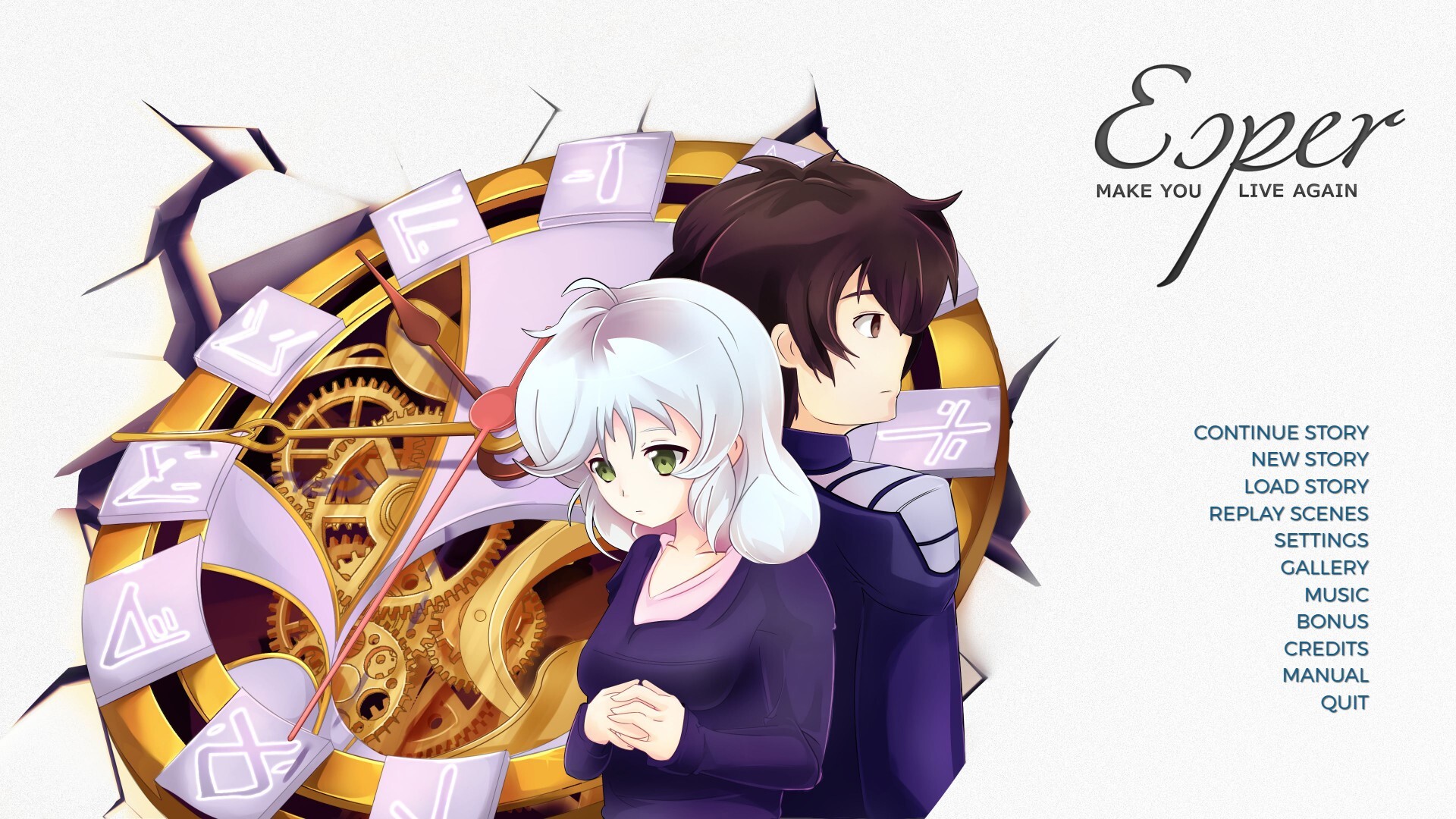 Esper - Make You Live Again is a kinetic novel that tells the story of Ryo, a young student Esper in an Esper academy. The Espers are humans with special abilities. They can, when a person is suffering, share the pain and see the past and the memories of that person. Using their powers and their un...