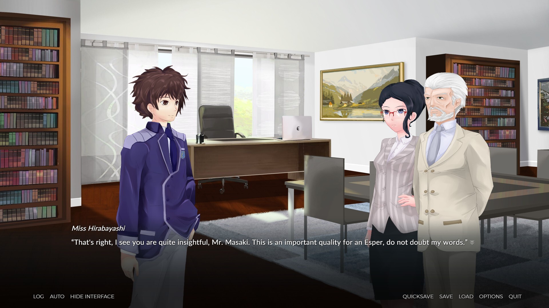 Esper - Make You Live Again is a kinetic novel that tells the story of Ryo, a young student Esper in an Esper academy.