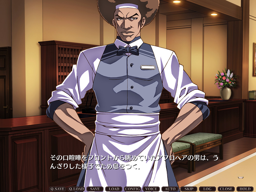 Keisuke is the vice manager of the Hotel Primeiro, a warm respite for the hearts of weary travellers. He is an overly serious individual who strictly enforces the hotel’s rules. In the comforts of his room, he listens to a melody over and over again. After he heard a similar music coming from the lobby, he headed there to find a girl playing the guitar. When he asked her for the name of the song she was playing, she rushed at him with a knife. Fortunately, he was able to stop her by grabbing the blade. She collapsed to the ground, not knowing why she just did that.