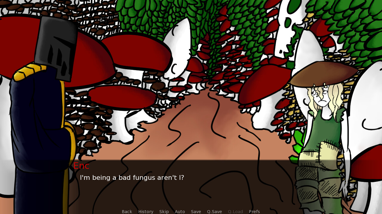 Follow the mushroom Enc on her little quest to help her new found friend Torze in making a flying machine, while they discuss about war and how to grow plants that become engines! Also help her in cheer up her old friend Sinal who out of nowhere got kinda down in the dumps for some reason!