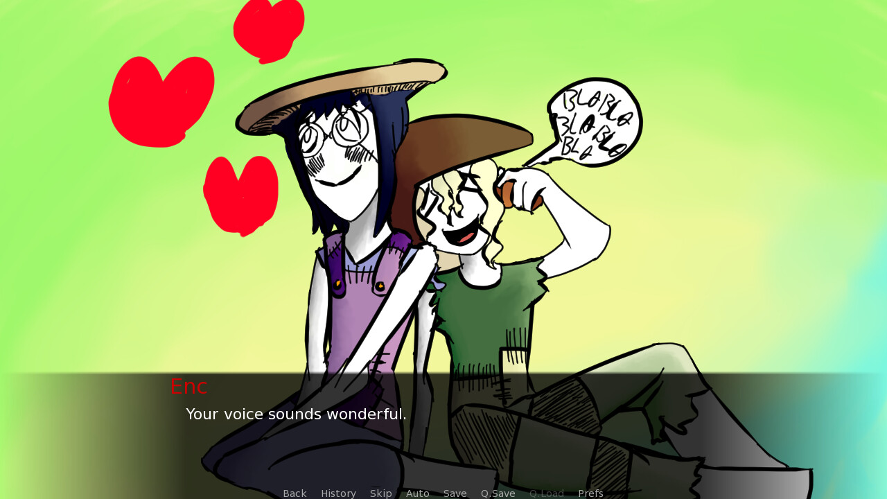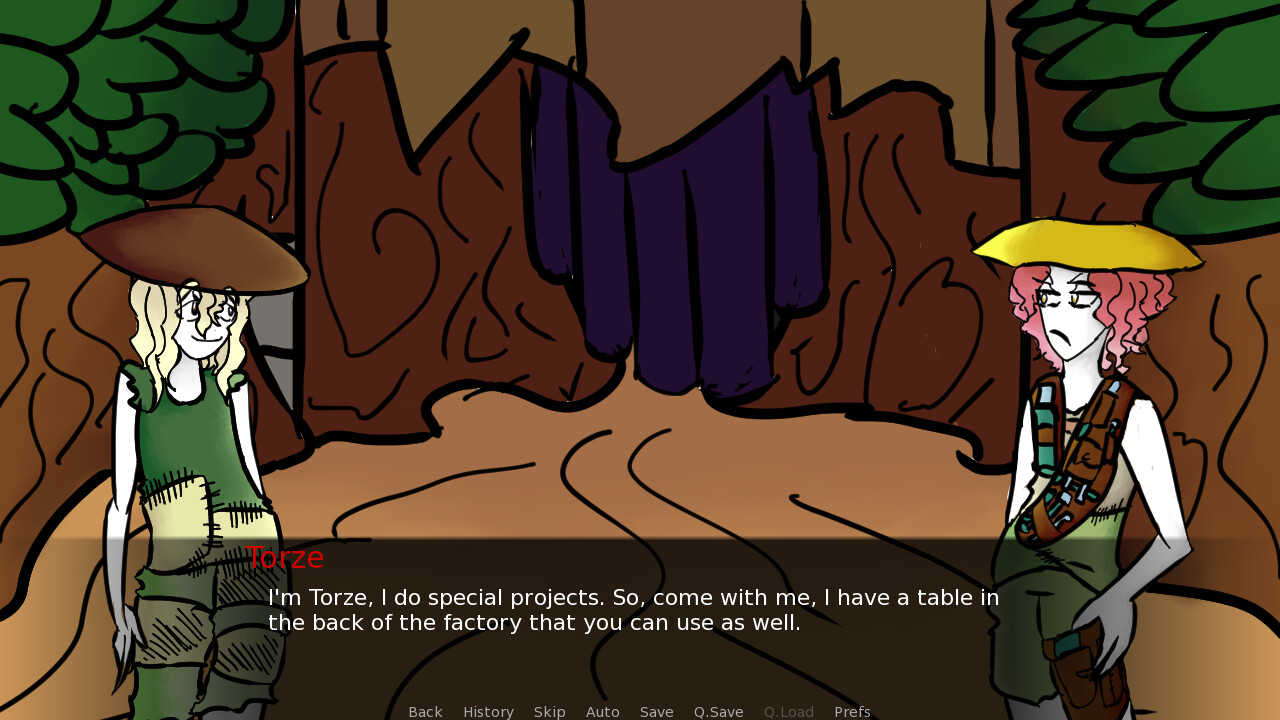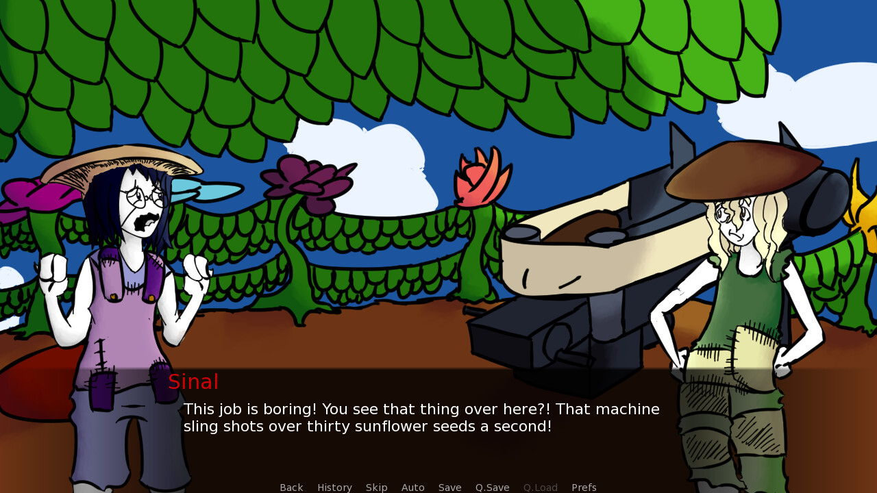 Follow the mushroom Enc on her little quest to help her new found friend Torze in making a flying machine, while they discuss about war and how to grow plants that become engines! Also help her in cheer up her old friend Sinal who out of nowhere got kinda down in the dumps for some reason! itch.io]