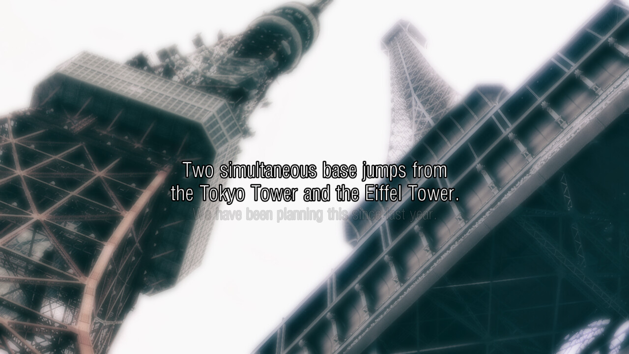 Romance doesn't just fall from the sky... or does it? Two base jumpers attempt their most ambitious stunt yet. itch.io]