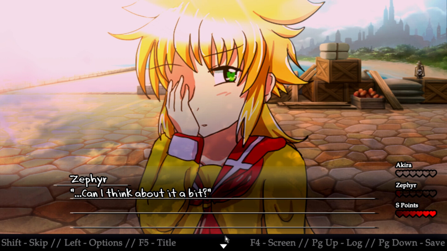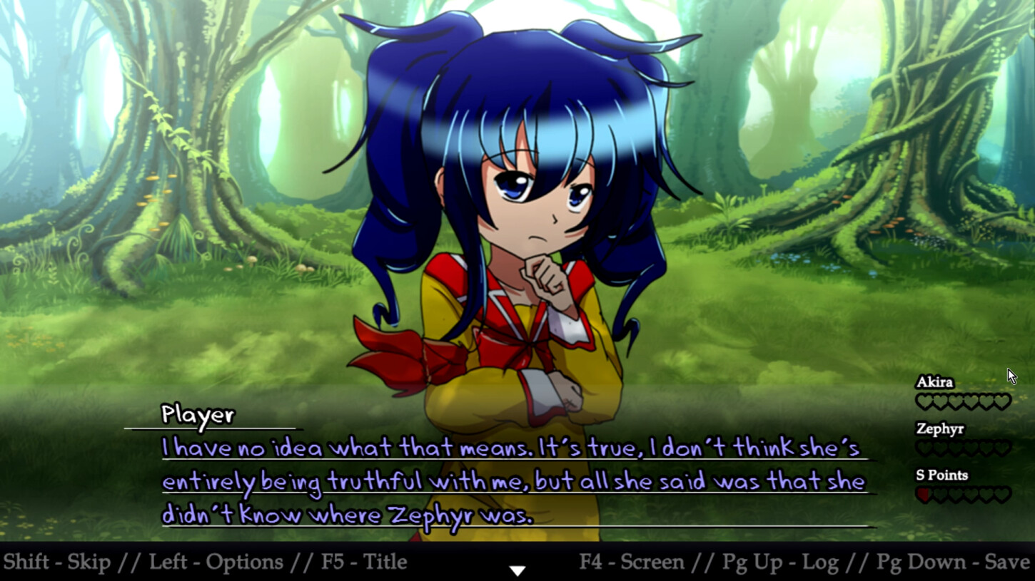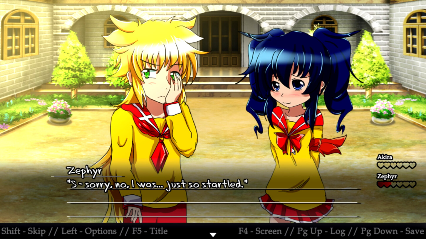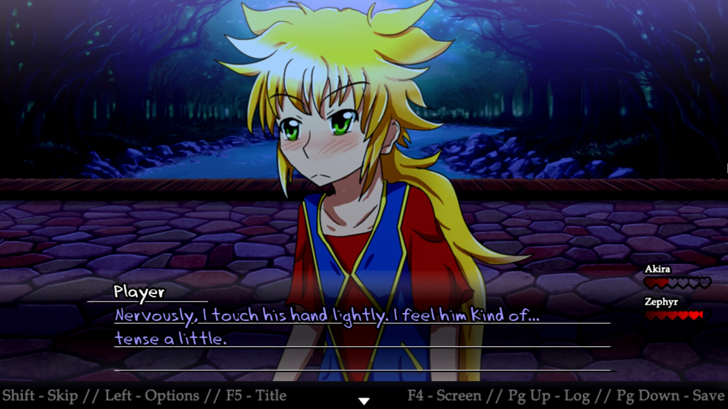 Become Player. The... er, Player. Player finds themselves in an anime-esque dating sim world that oddly resembles a fantasy RPG for some reason. Player meets two potential love interests. Player wants them. They want each other. Emotions ensue.