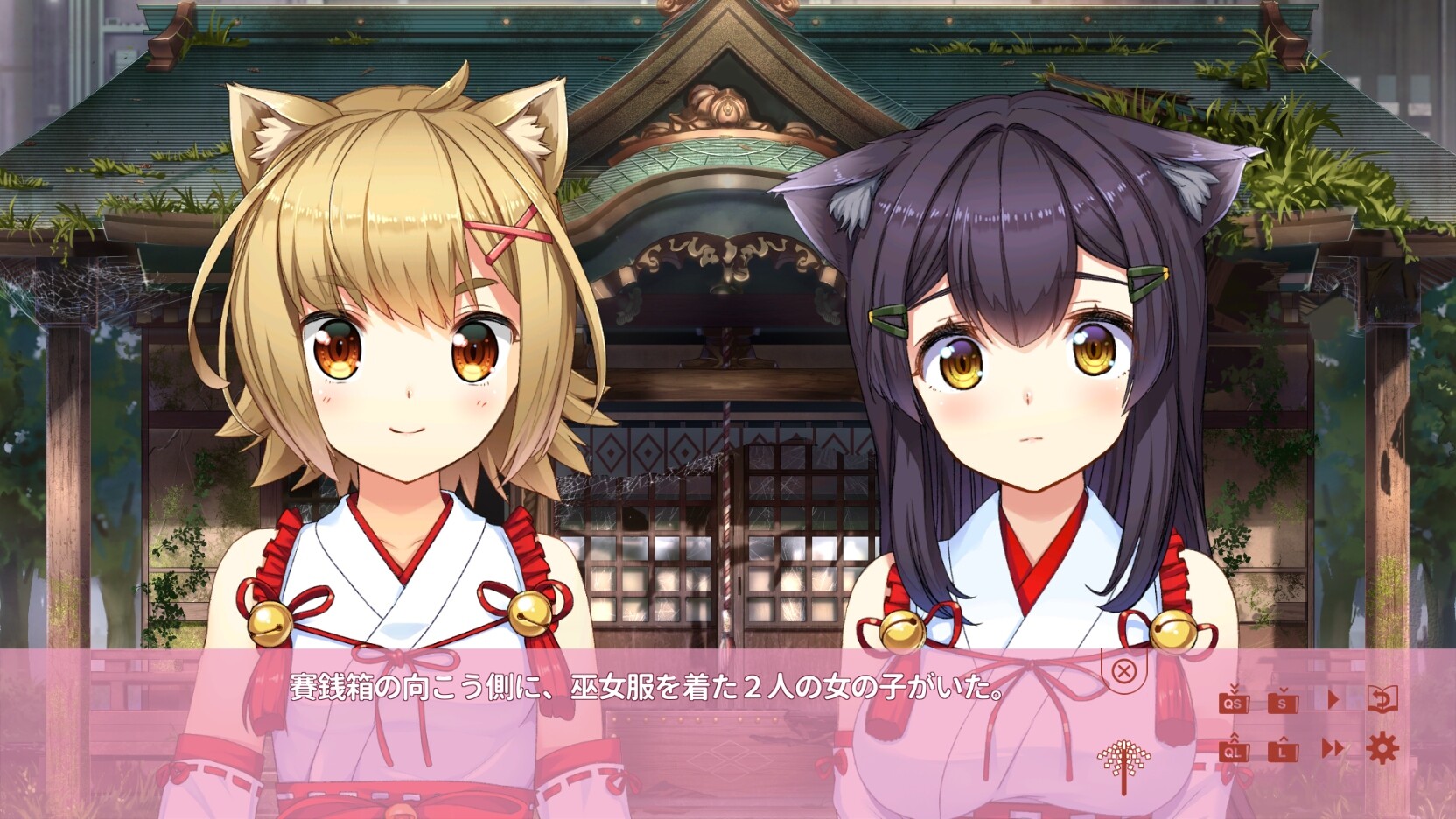 The 2 cat-eared girls in the appearance of shrine maidens, could not stand by and not greet their first worshipper for many years. Especially one riddled with such misfortune.
