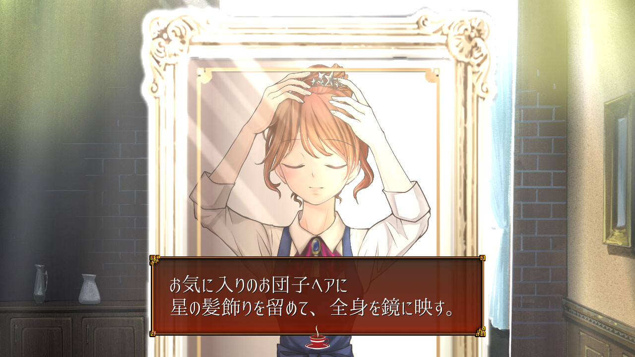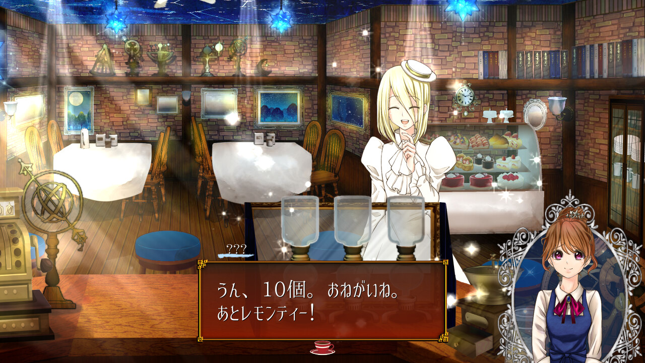 -My love for stars won't bring you before me, but the bond of constellations gave me a different- This is a dating simulator depicting a gradual growth of a pastry chef, who is the protagonist of the story, with regular customers of her shop. DLsite English]