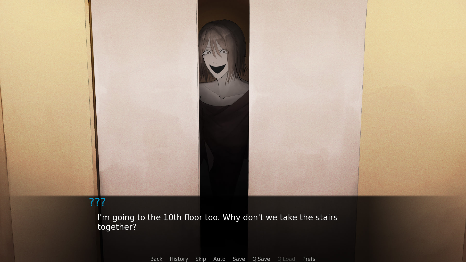 You're trying to get to work, but the elevator stops. A man tries to help you out, but something about him seems off. Itch.io]