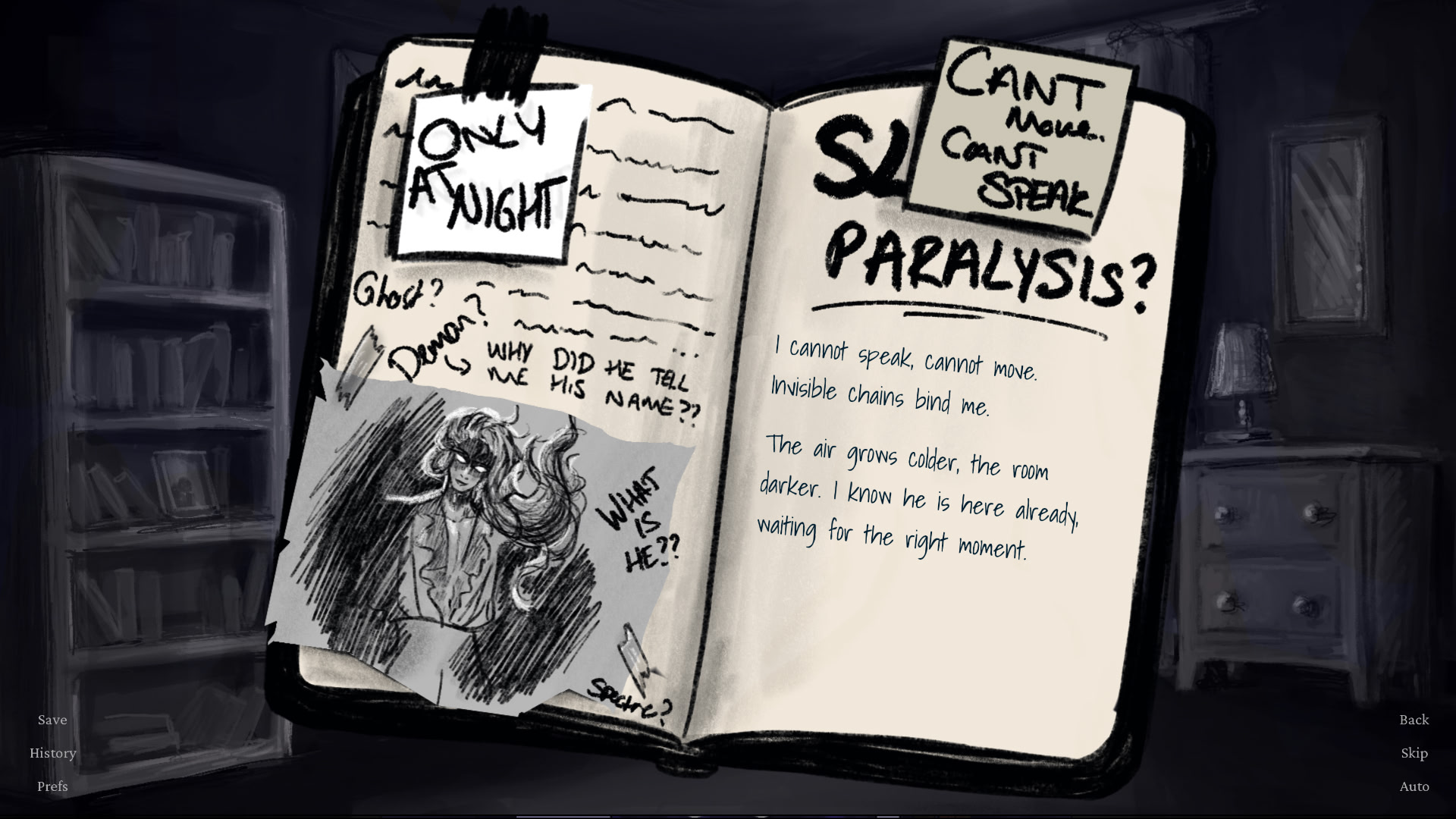 Explore a single surreal encounter with a sleep paralysis demon who might want more than to simply haunt you. itch.io]